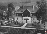 Lata 1912-1915 , Budynek przy ul. 1 Maja w Szklarskiej Porębie (w sąsiedztwie Szkoły Podstawowej nr 1); fragm. pocztówki.