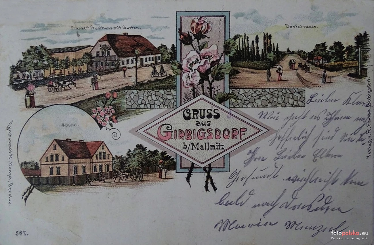 Lata 1900-1904 , Girbigsdorf 1904 - zajazd z ogrodem, wiejska droga, szkoła.Skomentuj zdjęcie