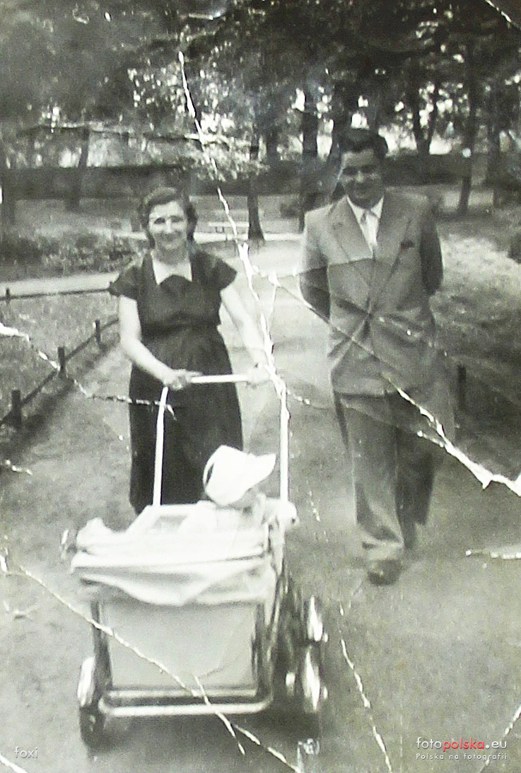 1958 , Jestem w wózku na jednej z alejek w Parku Nadodrzańskim wraz z rodzicami w rejonie od ulicy Oławskiej. W tle ledwie widoczny mur odgradzający park od zamku. Współcześnie to ten rejon parku -Skomentuj zdjęcie