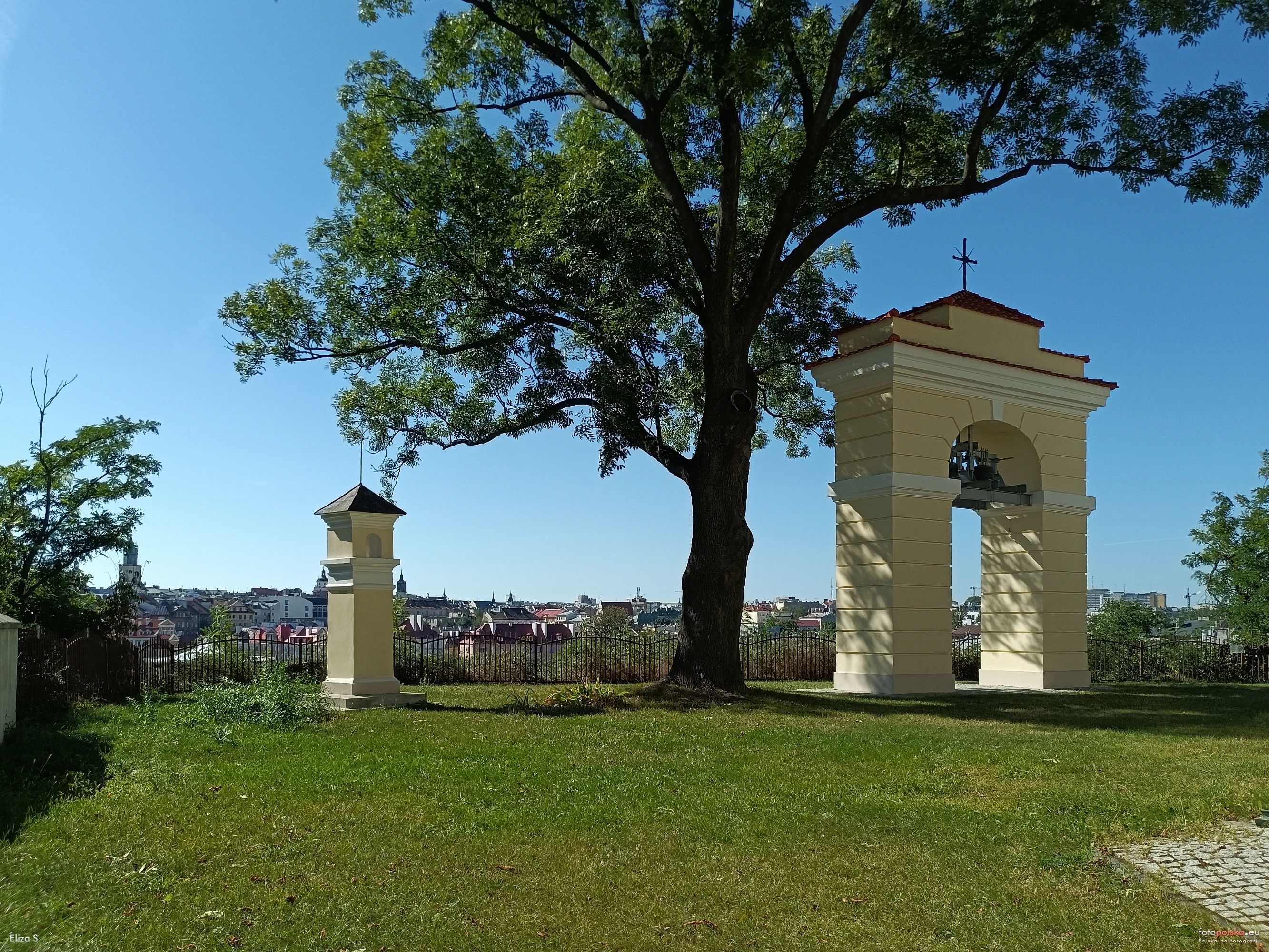21 września 2023 , Widok na zabytkową dzwonnicę z dwoma dzwonami i Kapliczkę Pana Jezusa Miłosiernego ( z lewej).Skomentuj zdjęcie |