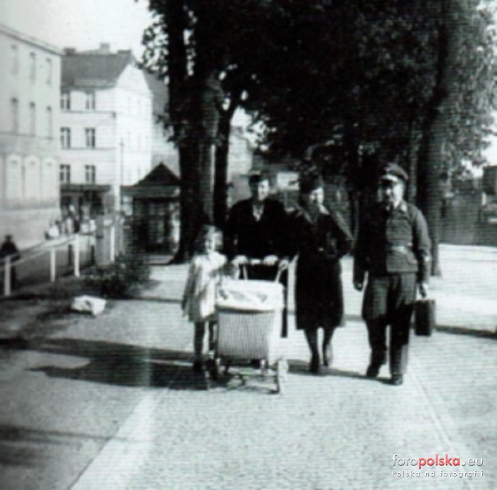 Lata 1941-1942 , Około 1941 - 1942 roku przywieźliśmy mojego ojca (w mundurze) na stację kolejową. Dworzec znajduje się po prawej stronie. Zdjęcie rodzinne rodziny Pasternak z Bahnhofstrasse 8. |