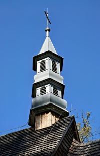 Kościół Wniebowzięcia Najświętszej Marii Panny więcej zdjęć (28) Historia. Kościół p.w. Wniebowzięcia NMP z 2 poł. XV (ok. 1464 r.) w. Rozbudowany w 1 poł. XVI w. – o murowaną zakrystię. Kolejna rozbudowa w 1 poł. XVII w. – budowa wieży. W 1670 r. kościół został częściowo zniszczony pożarem. Odbudowany dopiero ok. 1772 r. Remontowany w 1976 r. i latach 2011 – 13. Budowa i wyposażenie. Kościół drewniany, jednonawowy konstrukcji zrębowej. Orientowany, zbudowany w tradycji późnogotyckiej, zatartej przez kolejne przebudowy. Prezbiterium mniejsze od nawy, zamknięte trójbocznie z murowaną, boczną zakrystią. Kruchta z boku nawy i od frontu (część dawnej wieży). Dach dwukalenicowy, kryty gontem z sześcioboczną wieżyczką na sygnaturkę Zwieńczoną hełmem blaszanym, ostrosłupowym z podwójną latarnią. Wewnątrz strop płaski z fasetą, wspólny dla nawy i prezbiterium z zaskrzynieniami w nawie, wsparty na dwóch słupach. Belka tęczowa z krucyfiksem wczesnobarokowym z p. XVII w. Chór muzyczny wsparty na dwóch słupach z barokowym prospektem organowym i parapetem o prostej linii, ozdobionym malowidłami z ok. poł. XIX w. Ucieczka do Egiptu, Zaślubiny MB i Nawiedzenie Świętej Elżbiety. Okna o bogatym wykroju ciesielskim, wycięte w ośli grzbiet. W prezbiterium okno w kształcie czworoliścia. Ołtarz główny, ambona i konfesjonały barokowe z 1 poł. XVIII w. Dwa ołtarze boczne neobarokowe i dwie ławki z 2 poł. XIX w. Chrzcielnica z 1 poł. XVII w. Dzwonnica murowana typu parawanowego. Źródło: |
