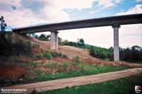 3 maja 1998 , Jeden z dwóch nowych mostów budowanych w ciągu nowego odcinka Drogi Krajowej nr 28 widoczny z dna dolinki potoku Bystrz. Jest to most od strony Wadowic. Teren pod nim będzie zalany przez wody przyszłego jeziora. Widoczna tu droga prowadziła od starej drogi krajowej nr 28 do miejscowości Koziniec.Skomentuj zdjęcie |