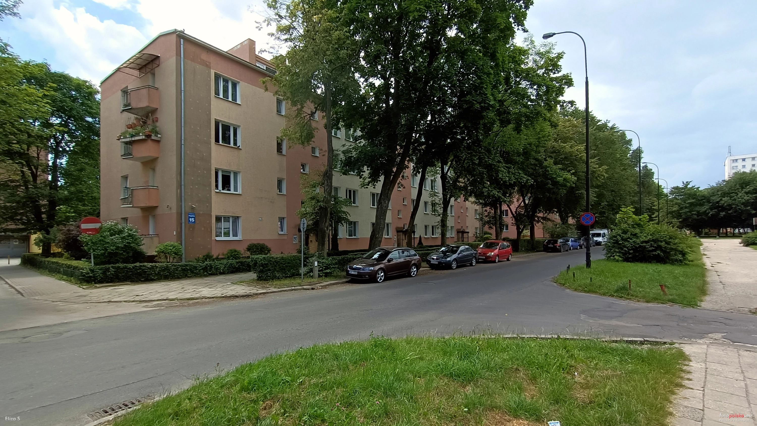3 lipca 2023 , Ulica Pogodna w kierunku ul. Lotniczej, widok w obrębie skrzyżowania z ul. Sokolą (z lewej). Widoczny blok mieszkalny nr 15.Skomentuj zdjęcie |