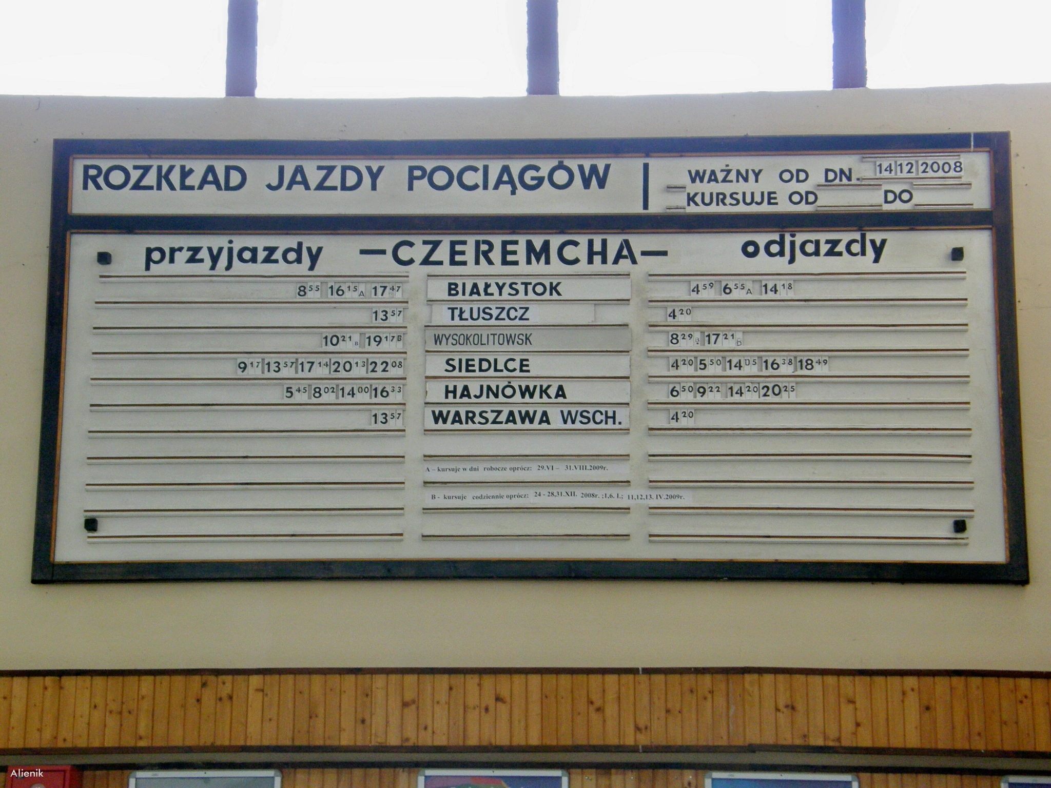 8 sierpnia 2009 , Wnętrze dworca, tablica z rozkładem jazdy 2008/2009.Skomentuj zdjęcie |