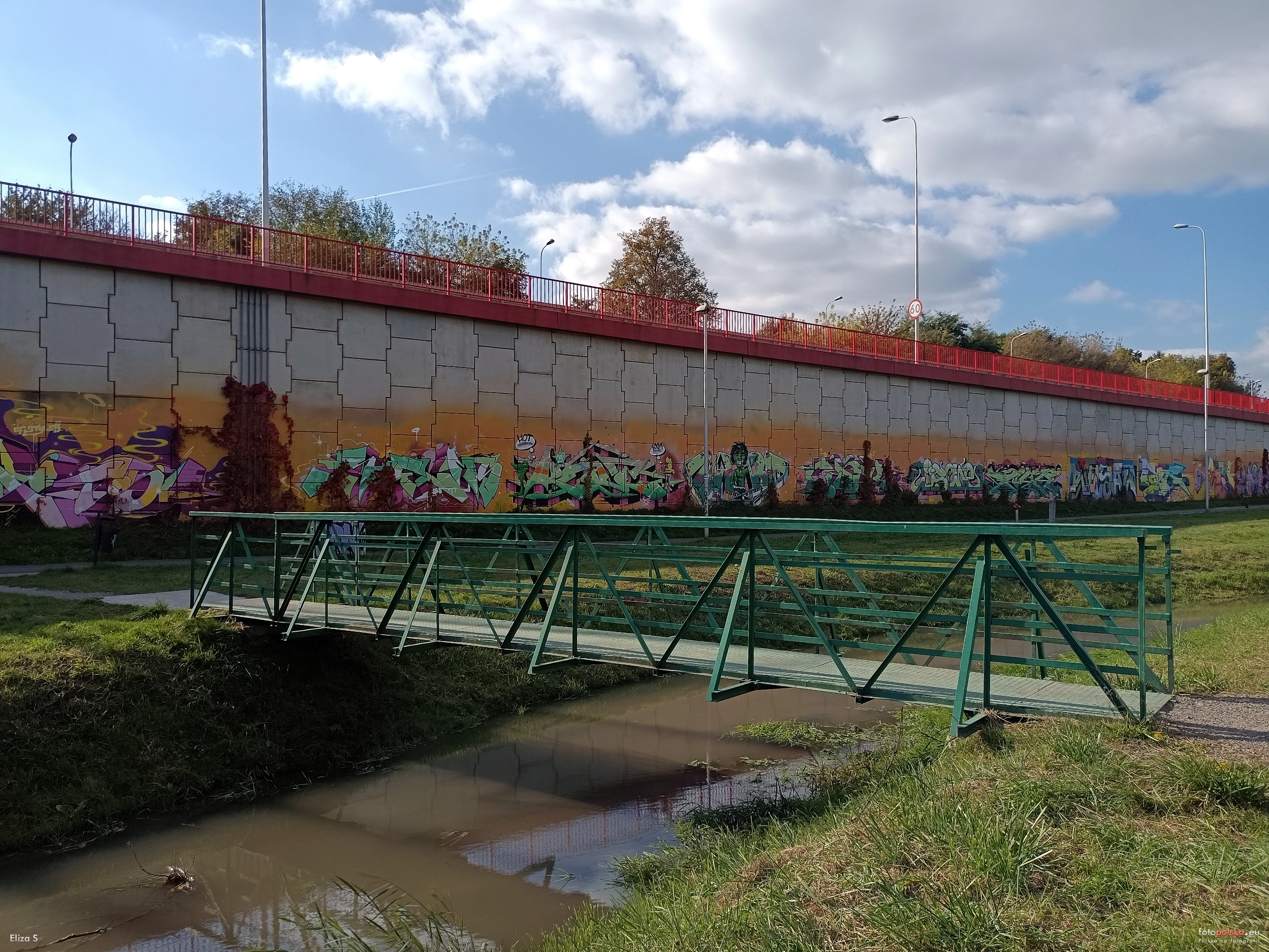 18 października 2023 , Kładka pieszo-rowerowa na Czechówce, w głębi ściana oporowa Alei Solidarności z muralem Meeting of Styles Lublin (Poland) 2023.Skomentuj zdjęcie |