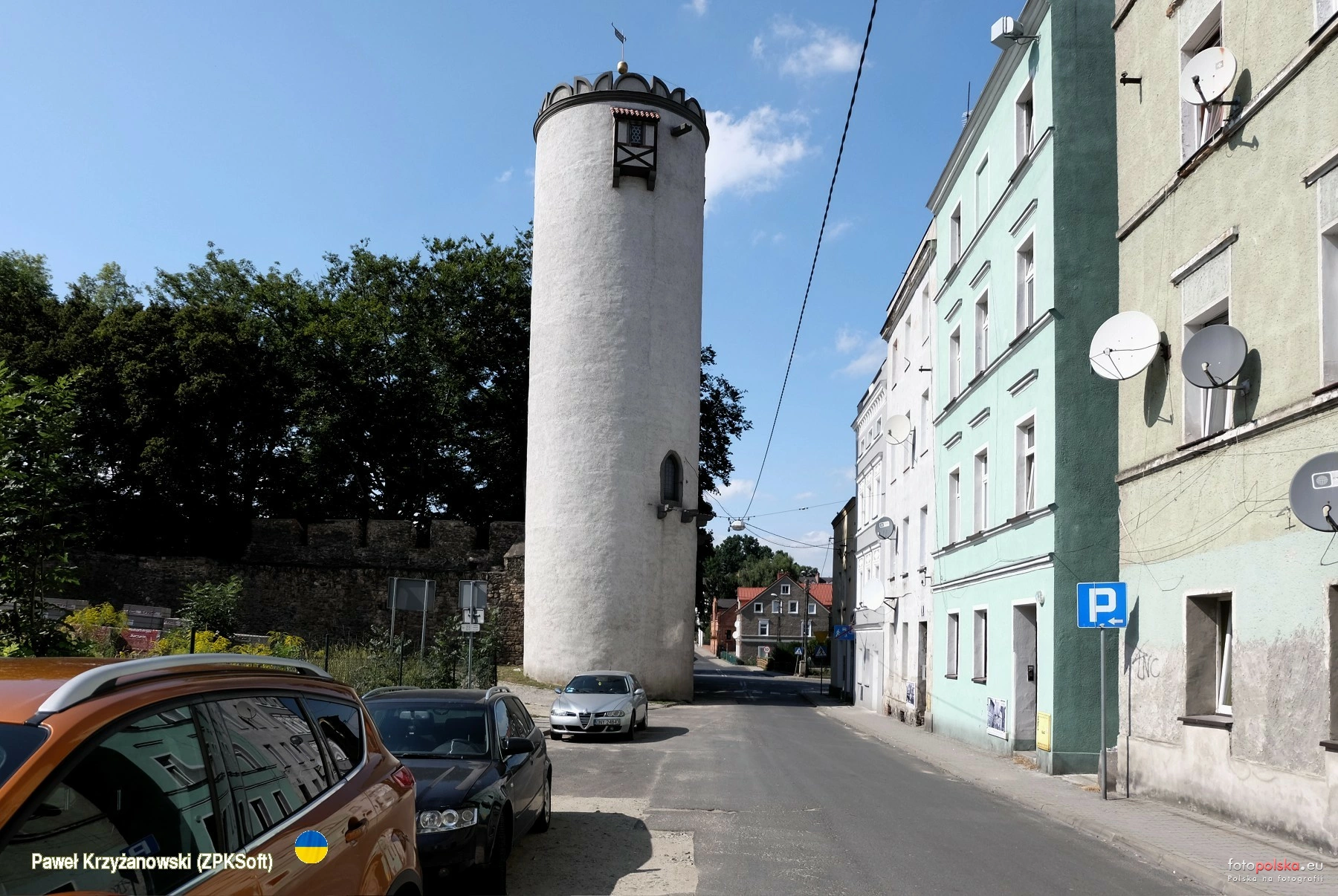 23 sierpnia 2023 , Fragment ulicy Sikorskiego z wysoką na 27 m wieżą. Wieża Bramy Ząbkowickiej, wcześniej zwaną Łaziebną z racji sąsiedztwa łaźni miejskiej. Wzniesiona w ciągu murów obronnych w XIV w., od wieku XVI zakończona attyką.Skomentuj zdjęcie |