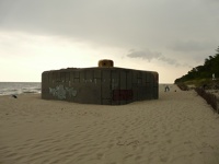 Ciężki schron bojowy "Sęp" więcej zdjęć (55) Atrakcja turystyczna Zbudowano: 1939 Ciężki schron bojowy, przeznaczony dla broni maszynowej. Obiekt został ulokowany na plaży. Wobec takiego położenia schron był bardzo trudny do zamaskowania. Aby zwiększyć odporność obiektu, zastosowano grubsze ściany niż w przypadku pozostałych obiektów. Grubość ścian zewnętrznych: 125-330 cm. Grubość pancerzy w ścianach 25 mm. Grubość kopuły pancernej 180-200 mm. Nie zmieniło to jednak klasy odporności i obiekt zapewniał ochronę przed uderzeniem pocisku o kalibrze 220 mm, przy jednokrotnym trafieniu w dane miejsce. |