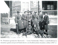1939 , Przejście graniczne Barwinek-Vyšný Komárnik. Polscy i czechosłowaccy strażnicy graniczni przed budynkiem czechosłowackiej strażnicy celnejSkomentuj zdjęcie
