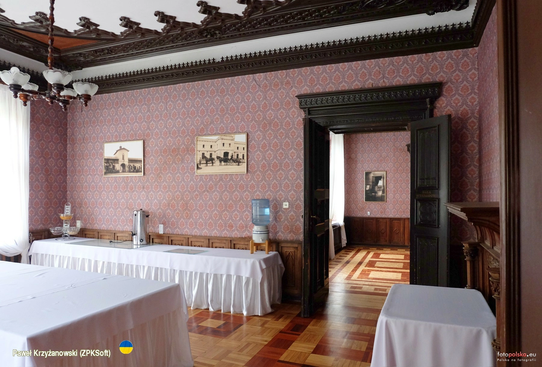 29 października 2023 , Sala współcześnie nazwana wykładową - jedno z wnętrz na parterze pałacu. Pałac powstał w 1866 r. i w dobrym stanie przetrwał wszelkie zawieruchy. Niestety w czasie II wojny światowej miał tu siedzibę komisarz Rzeszy ds. utrwalania narodowości niemieckiej i musiały zniknąć portrety królów polskich oraz zamalowano polichromie herbowe. Niemcy zniszczyli też wyposażenie. Obecnie pałac pełni funkcję restauracyjną (parter) oraz hotelową (piętro) stąd wszechobecne stoły w każdej sali.