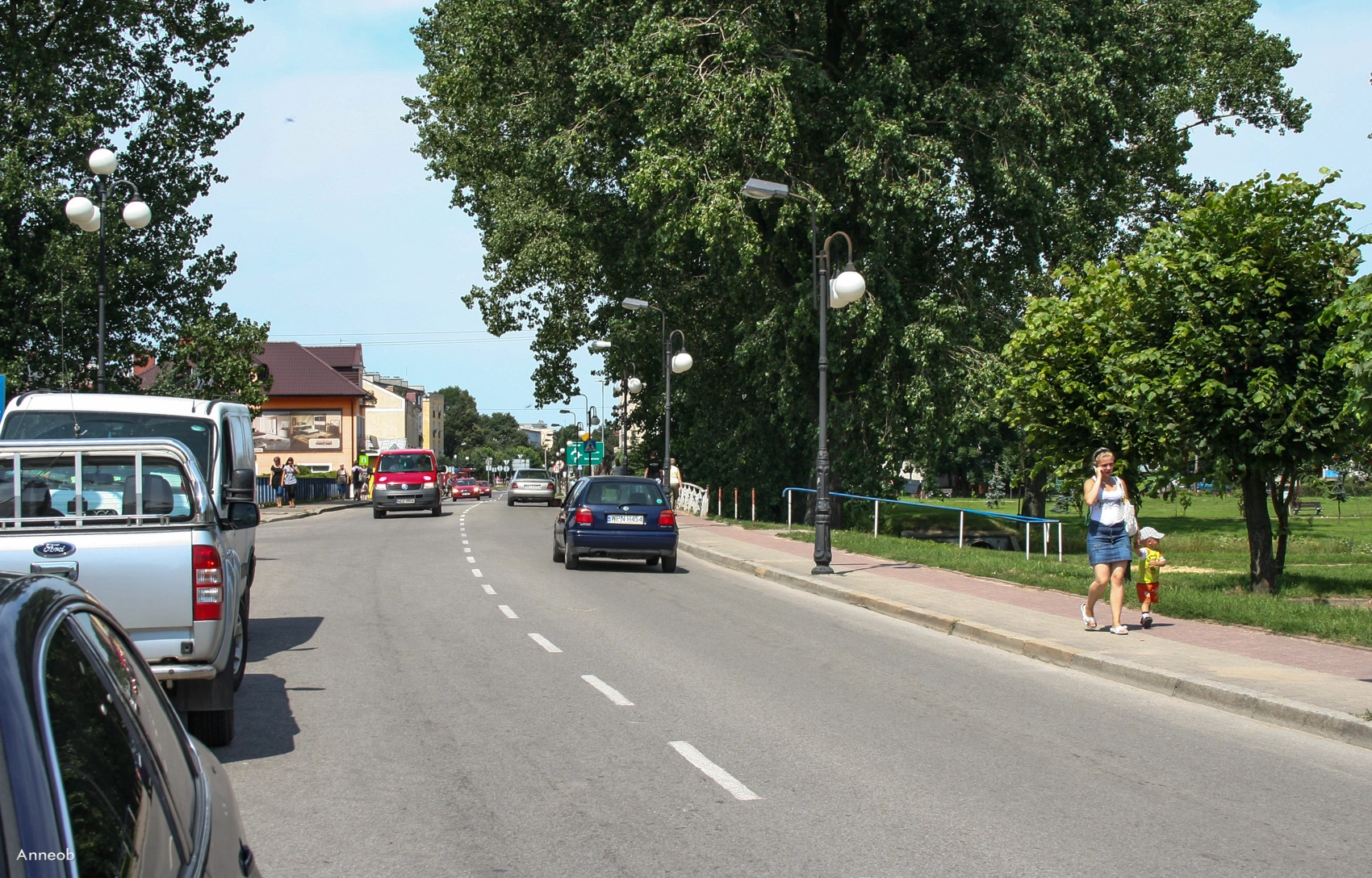 23 lipca 2009 , Ul. Grunwaldzka przed mostkiem na Płonce. Po prawej, Park 600-lecia.Skomentuj zdjęcie |