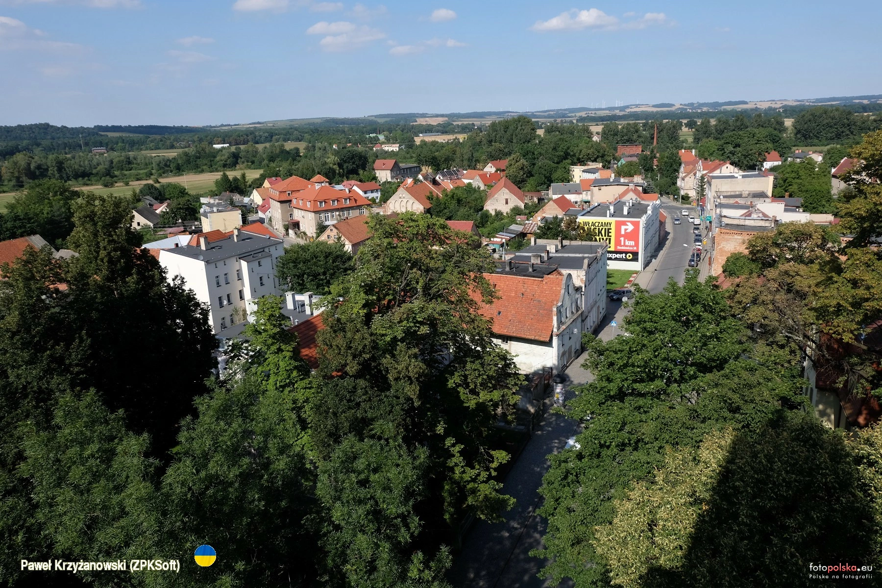 23 sierpnia 2023 , Ze szczytu wieży Bramy Wrocławskiej, budowli z XIV w., roztacza się wspaniały widok na Paczków i okolice. Na zdjęciu spojrzenie w kierunku północnym, głównie na zabudowę przy ulicy Armii Krajowej.Skomentuj zdjęcie |