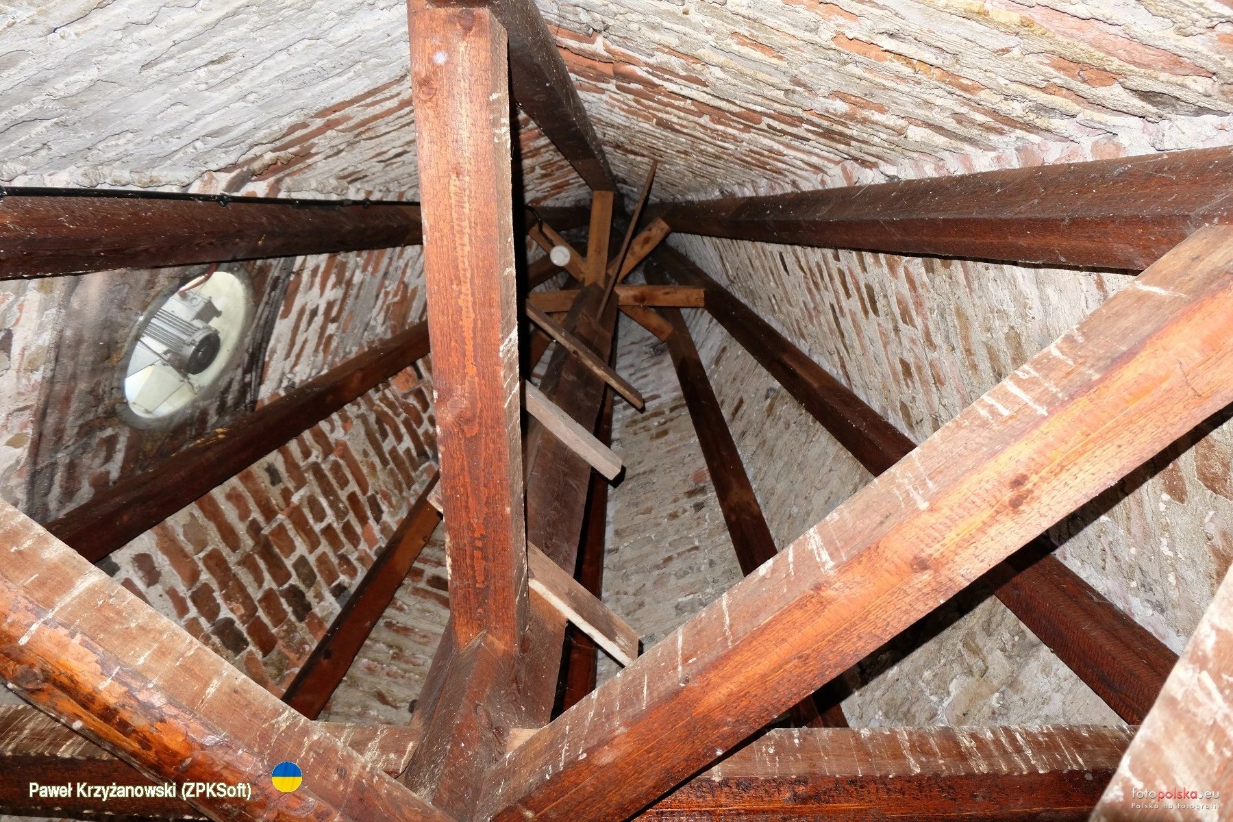 23 sierpnia 2023 , Wnętrze wieży Bramy Wrocławskiej, jednej z czterech bram w ciągu murów murów miejskich Paczkowa, wzniesionych w w poł. XIV w. Wieża w większości kamienna o wysokości ok. 30 m, siedmiokondygnacyjna, zwieńczona krenelażem i przykryta hełmem ceglanym. Aby dostać się na samą górę gdzie jest punkt widokowy trzeba się trochę natuptać ;-) Na zdjęciu wnętrze ceglanego hełmu wieży.Skomentuj zdjęcie |
