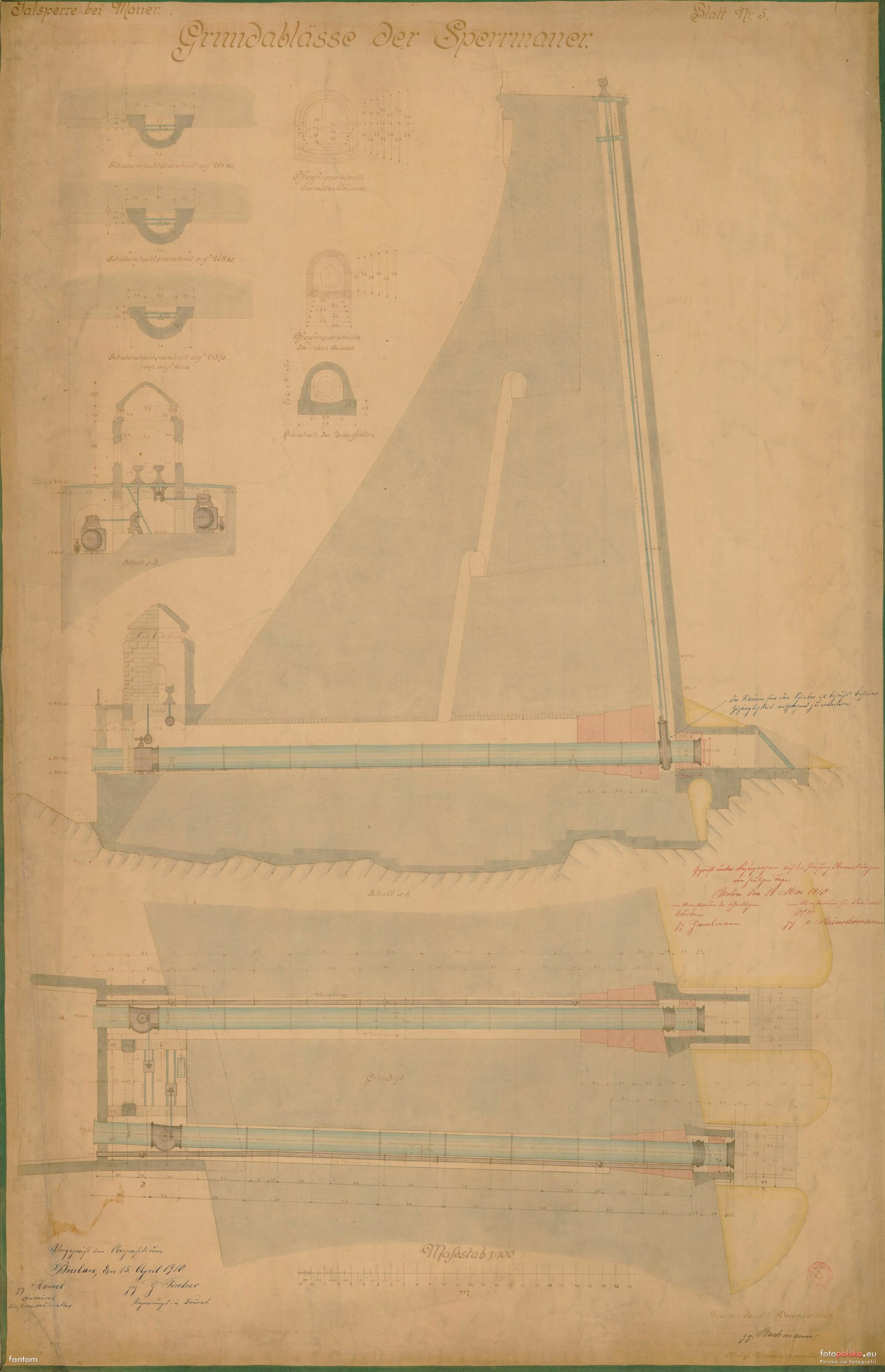 1909 , Przekroje zapory w Pilchowicach.Skomentuj zdjęcie |