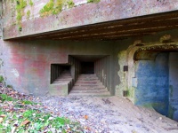 Schron dowodzenia z izbą bojową (Kle.A.B.) więcej zdjęć (73) Zbudowano: 1937 Dawniej: Kompanieführer-Stand mit MG-Schartenanlage Kle. A.B. Schron Kle.A.B. posiada rzadszą konstrukcję. Jest to obiekt bojowy z pomieszczeniem dla obsługi ckm oraz pokojem dowódcy ogólnowojskowego. Wejście do schronu osłaniane byłó zarówno wewnętrzną jak też zewnętrzną strzelnicą. Znakomicie zachowała się ambrazura strzelnicy zewnętrznej i szczeliny obserwacyjnej. Schron wzniesiono w 1937 roku w klasie odporności B1. Schron bojowy wybudowany po 1936 roku według nowych, ściśle określonych standartów. Cechą charakterystyczną tego typu obiektów było małe pomieszczenie bojowe, które wystawało poza główny obrys obiektu i służyło do obrony tylnej ściany. Lewe wejście do schronu było zakryte charakterystycznym skośnym stropowym nawisem. Druga mniejsza strzelnica była skierowana wzdłuż przedsionka. Na dobrze zachowanej tylnej ścianie zachowały się ślady farb maskujących. Schron posiada duży, dwuwejściowy przedsionek, pomieszczenie dla dowódcy i łącznościowców oraz pomieszczenie bojowe z częścią mieszkalną dla załogi. Schron jest świetnie zachowany, posiada nienaruszony strop oraz ściany nośne, a wewnątrz dużą ilość niezniszczonych elementów wyposażenia. |