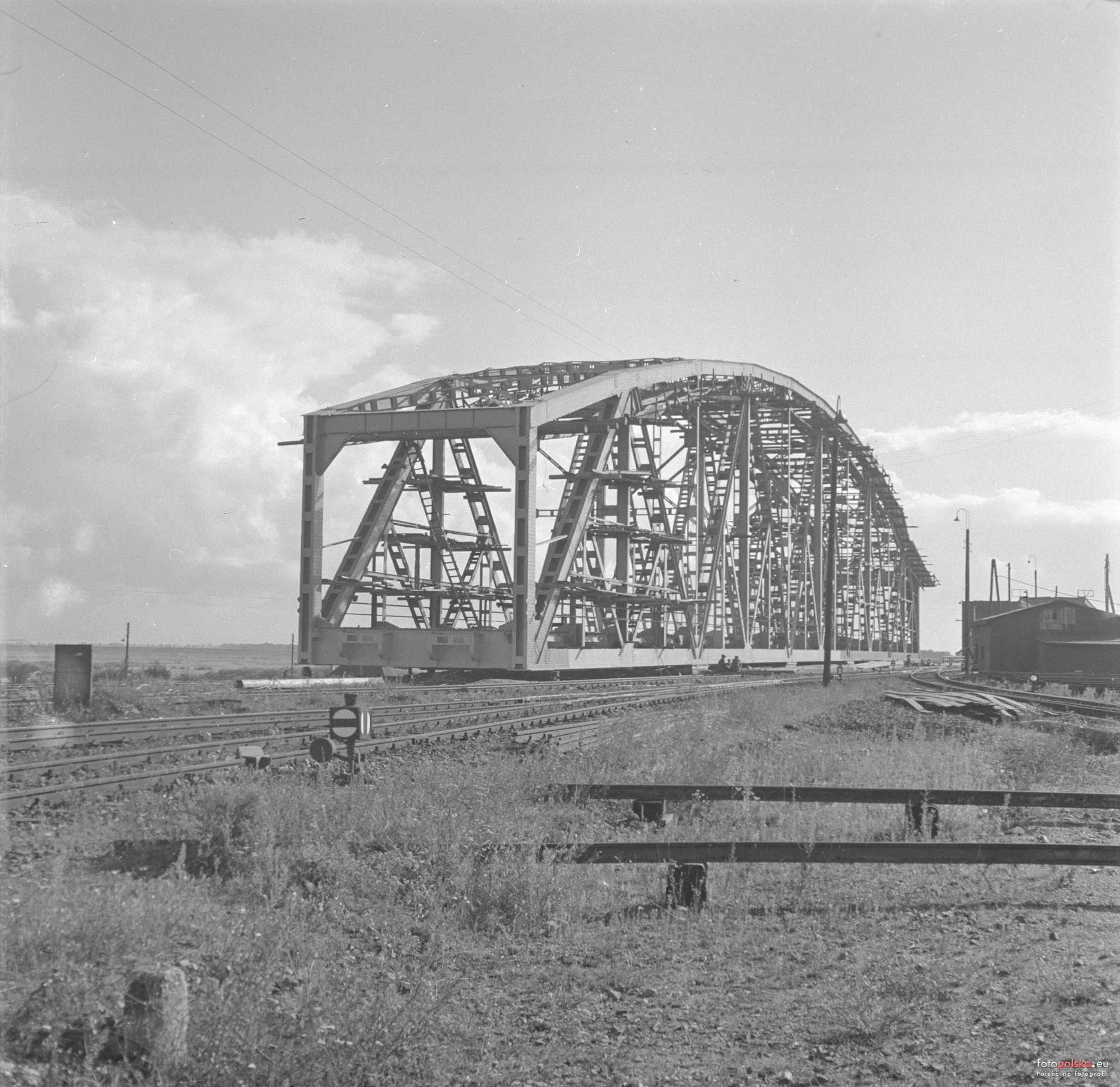 Lata 1958-1959 , Prace na linii kolejowej przy moście w Tczewie.