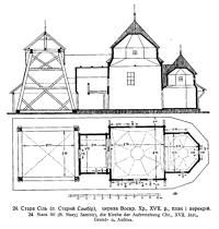 Lata 1930-1936 , Plan cerkwi. Źródło: Ukrainski derevljani cerkvy. M. Dragan, cz. 2, 1937Skomentuj zdjęcie |