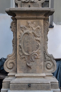 9 listopada 2023 , Krzyż - Boża Męka podczas renowacji. Fragment zabytkowego kamiennego krucyfiksu na Placu Św. Krzyża w Cieszynie, frontowy widok na cokoł i kartusz po oczyścieniu i uzupelnieniu brakujących elementów piaskowcaSkomentuj zdjęcie