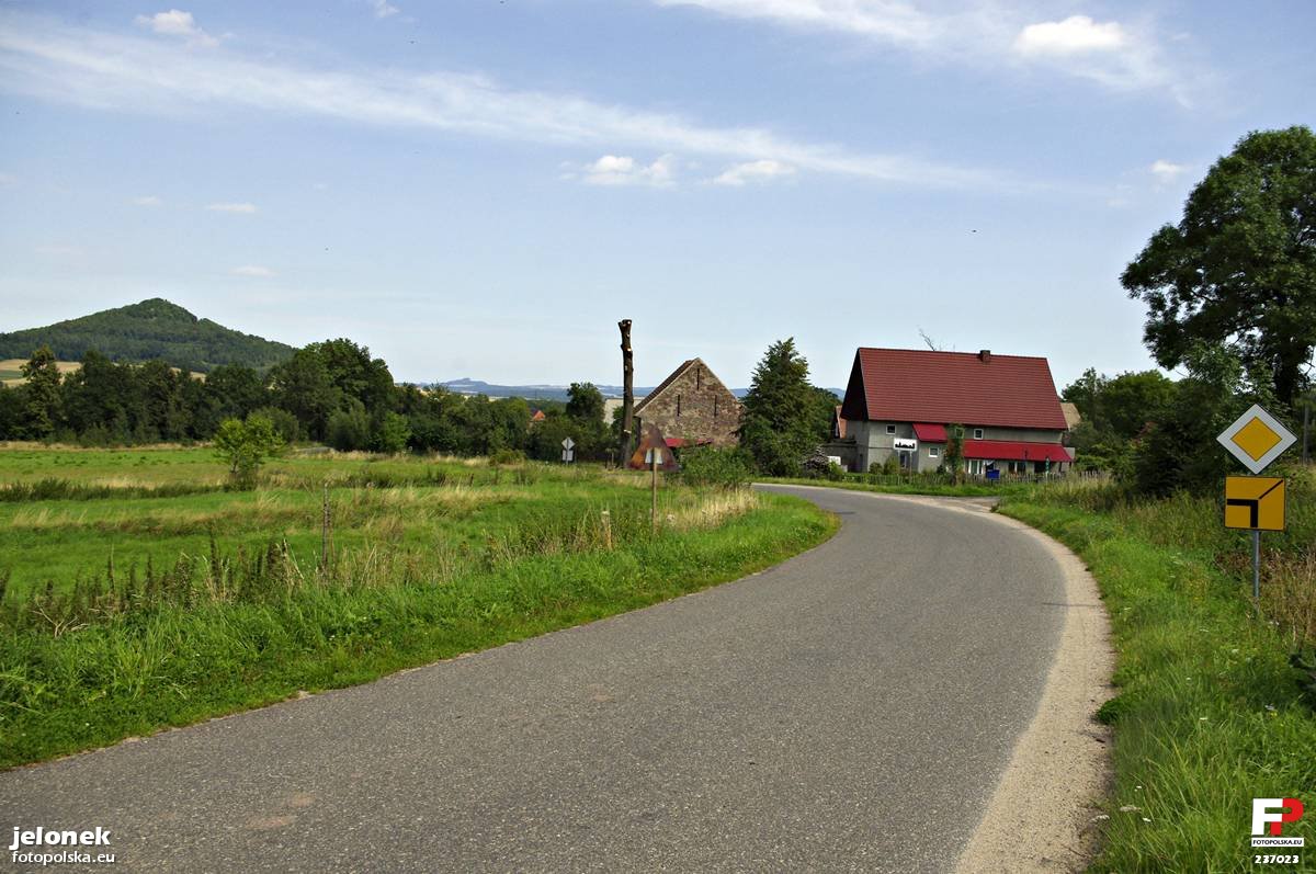 21 sierpnia 2011 , Bełczyna widok od strony Bystrzycy. Po lewej widoczna góra Ostrzyca (bazaltowy stożek wulkaniczny).Skomentuj zdjęcie |