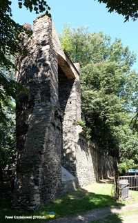 0 pobrań 486 odsłon 6 średnia ocen Poprzednie i następne zdjęcia ZPKSoft Obiekty widoczne na zdjęciu Mury miejskie więcej zdjęć (116) Atrakcja turystyczna Zbudowano: XIV-XV w. Mury obronne Paczkowa mają eliptyczny, regularny zarys i mierzą 1200 m w obwodzie, miejscami wysokie na 7 metrów, zbudowane z kamienia łamanego, otaczają miasto regularnym owalem odługości 1200 metrów. To właśnie dzięki murom obronnym Paczków znany jest jako „Polskie Carcassonne“. W 1839 r. Rada Miejska zatwierdza rozebranie murów miejskich (przed fosą) i zasypanie fosy od bramy Górnej (Kłodzkiej) do bramy Dolnej (Wrocławskiej), powstaje tam promenada. Wieże bram Wrocławskiej, Kłodzkiej i Ząbkowickiej zostają wyremontowane w 1840 r., wieża Kłodzka otrzymuje pozłacany szpic, otwarto przejście przez mury miejskie do promenady przy nowo umiejscowionej katolickiej szkole, znajdująca się w tym miejscu część murów miejskich z dwoma bastionami została rozebrana. Dla poprawy komunikacji w drugiej połowie XIX wieku przebito cztery nowe przejścia w murze: w 1870 r. u wylotu ulic Słowackiego, Piastowskiej i E. Plater, a w 1873 roku także ulicy Kołłątaja. W 1870 r zdecydowano o rozbiórce kolejnych fragmentów murów, decyzja związana była z budową gimnazjum przy ul. Kołłątaja i rozbudową szkoły przy ul. Kościelnej. Wśród zburzonych odcinków znalazło się też pięć baszt. Prace przy fortyfikacjach trwały do początku XX w. Odtworzono wtedy przejazd bramny przy Wieży Kłodzkiej, później również Wrocławskiej(1921). Dawniej mury sięgały 9 metrów. W ich ciągu osadzone były baszty łupinowe, z których do dziś przetrwało 19 (dawniej było ich 24). Ich wygląd jest różny - niektóre sięgają wysokości murów obronnych, inne wyraźnie je przewyższają. W wielu z nich dobrze zachowały się liczne otwory strzelnicze. za /p> |