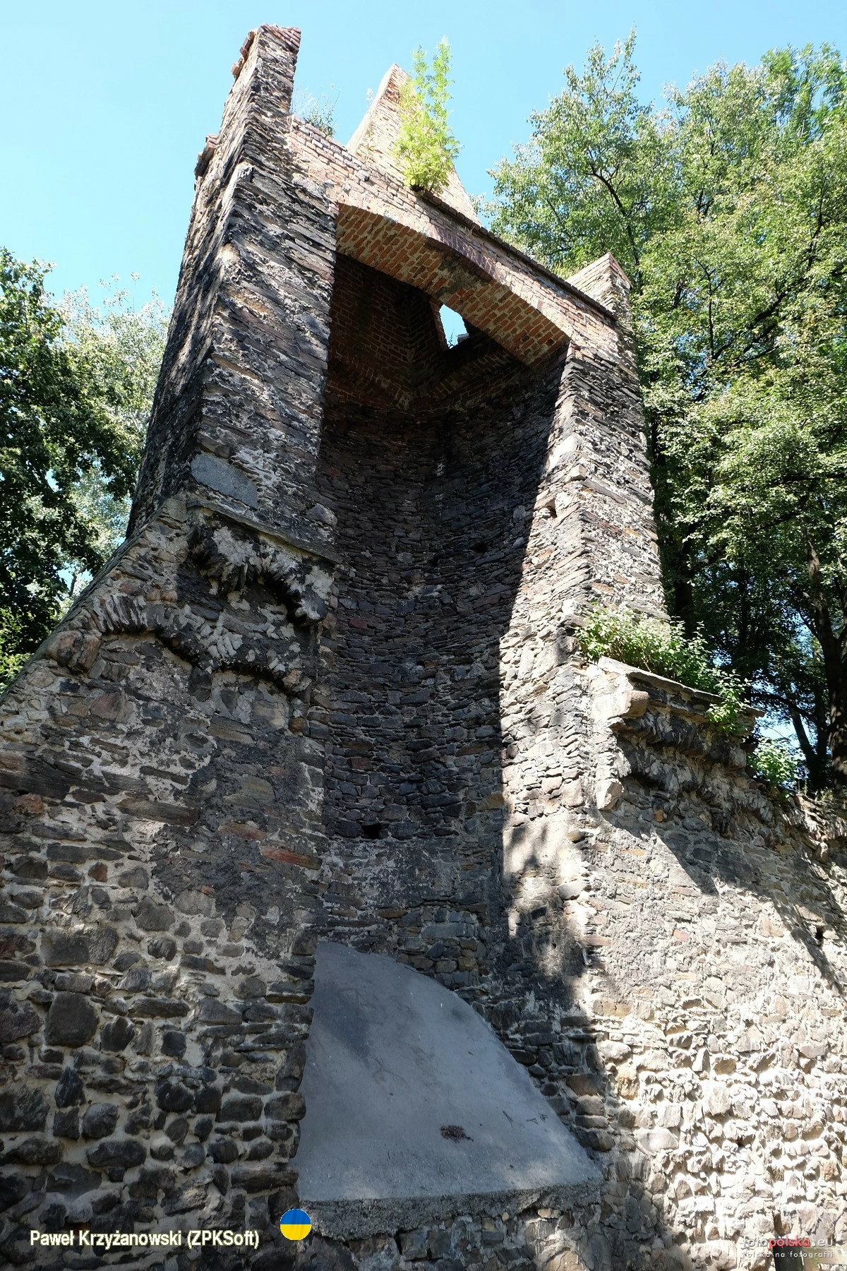 7 września 2023 , Mury obronne Paczkowa mają eliptyczny, regularny zarys i mierzą 1200 m w obwodzie, miejscami wysokie na 7 metrów ( pierwotnie 9 m), zbudowane z kamienia łamanego. Wzniesione ok. 1350 r. z nakazu biskupa Przecława z Pogorzeli. Przez wieki burzone i wznoszone ponownie, w XVI w. powstał drugi, niepełny pierścień obwarowań zewnętrznych, rozebrany w 1846 r. Między odcinkami muru osadzono cztery wieże oraz 24 baszty, z których do dziś zachowało się 19. W miejscu zasypanej fosy stworzono planty, zadrzewione dziś miejsca spacerów i wypoczynku. Na zdjęciu baszta łupinowa na odcinku przy ul. Kołłątaja. Dalej w lewo mury zostały rozebrane w XIX w. w związku z budową m.in. szkoły.Skomentuj zdjęcie |