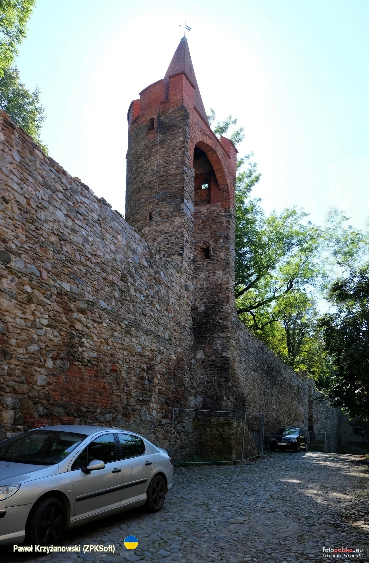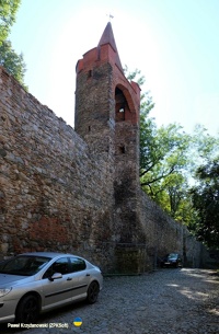7 września 2023 , Mury obronne Paczkowa mają eliptyczny, regularny zarys i mierzą 1200 m w obwodzie, miejscami wysokie na 7 metrów ( pierwotnie 9 m), zbudowane z kamienia łamanego. Wzniesione ok. 1350 r. z nakazu biskupa Przecława z Pogorzeli. Przez wieki burzone i wznoszone ponownie, w XVI w. powstał drugi, niepełny pierścień obwarowań zewnętrznych, rozebrany w 1846 r. Między odcinkami muru osadzono cztery wieże oraz 24 baszty, z których do dziś zachowało się 19. W miejscu zasypanej fosy stworzono planty, zadrzewione dziś miejsca spacerów i wypoczynku. Na zdjęciu fragment odcinka wschodniego wraz z basztą, widziany od wewnątrz obwarowań.Skomentuj zdjęcie