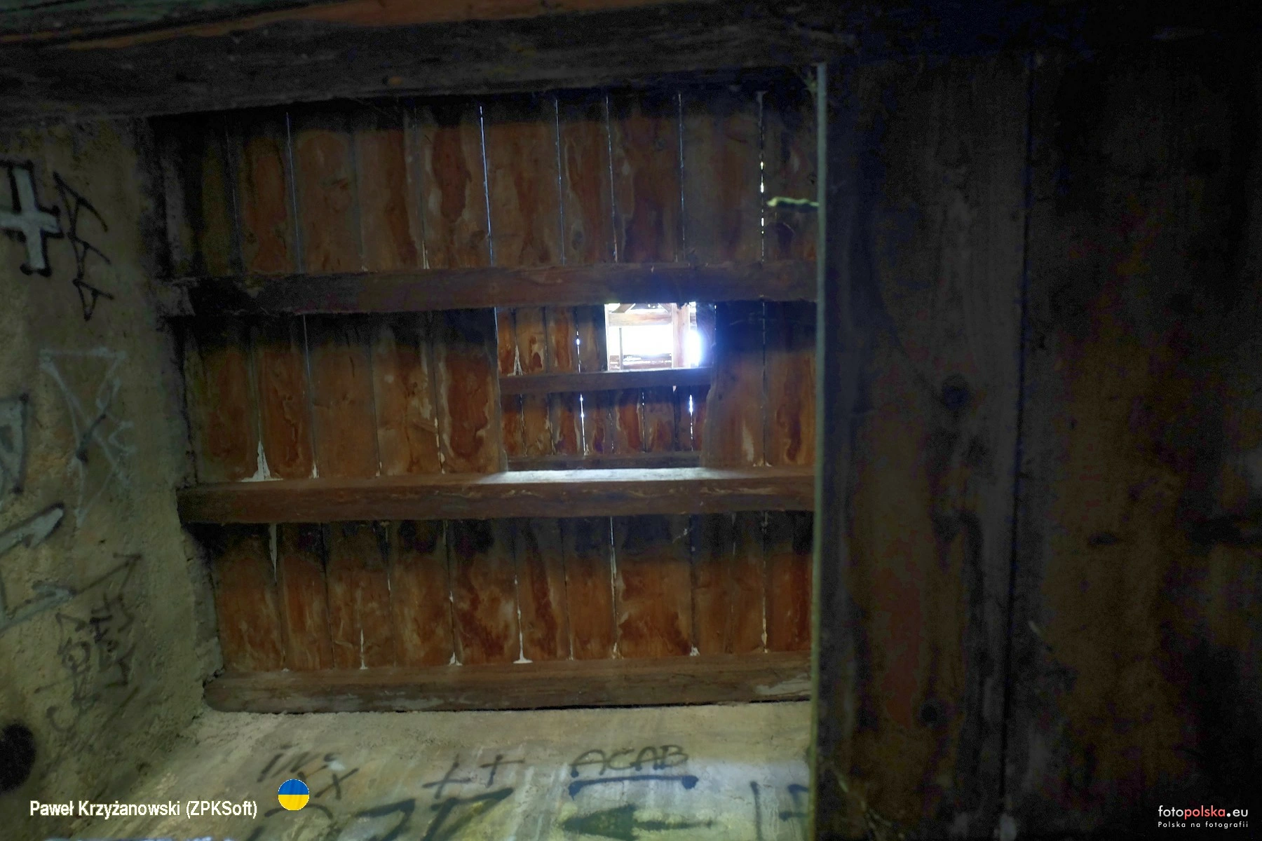 7 września 2023 , Cmentarny kościół św. Jana Ewangelisty powstał w l. 1604-1606 w stylu renesansowym, murowany z kamienia i cegły. Zniszczony pod koniec II wojny światowej, pozostała wieża bez hełmu i obwód murów nawy do wysokości ok. 2 m. Na zdjęciu wnętrze wieży, strop zachował się tylko na wysokości 3 kondygnacji, niższe rozebrano (spalono).Skomentuj zdjęcie |