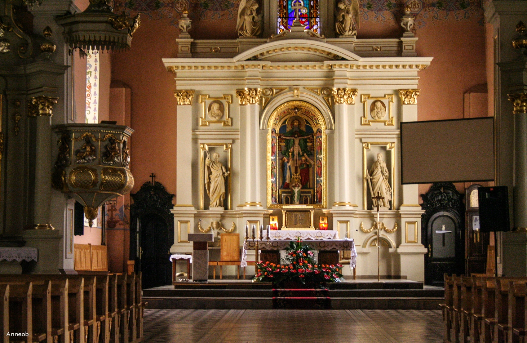 12 czerwca 2009 , Kościół Świętej Trójcy. Ambona i ołtarz główny.Skomentuj zdjęcie |