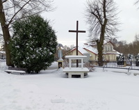 5 grudnia 2023 , Krzyż i figura Matki Bożej, widok w kierunku Plebanii-Kancelarii.Skomentuj zdjęcie |