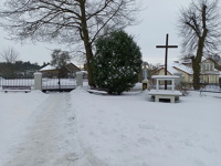 5 grudnia 2023 , Krzyż i figura Matki Bożej, boczna brama od strony drogi w kierunku cmentarza parafialnego.Skomentuj zdjęcie |