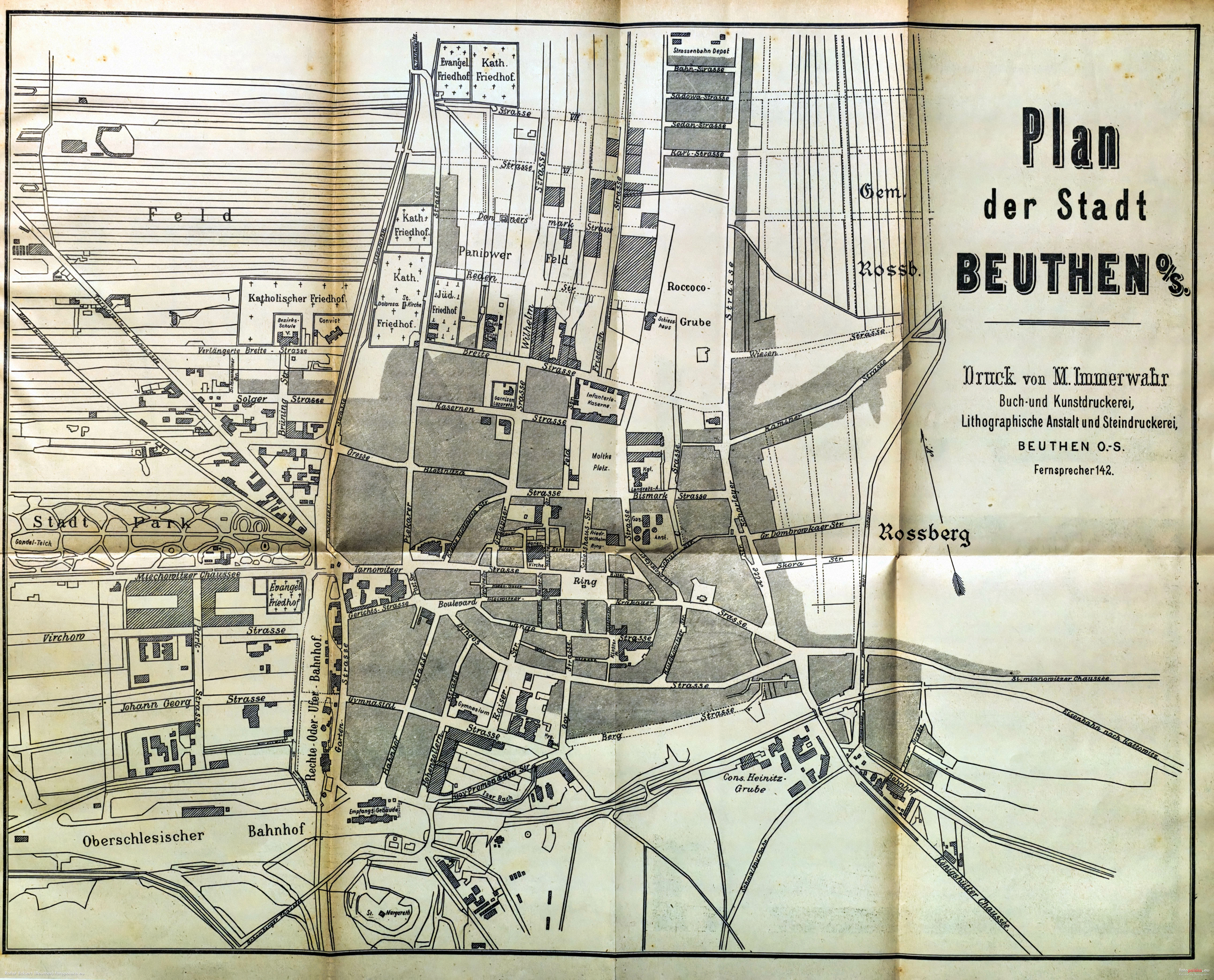 1907 , Plan miasta Bytomia z 1907 roku / Stadtplan Beuthen o/s von aus dem Jahr 1907Skomentuj zdjęcie |
