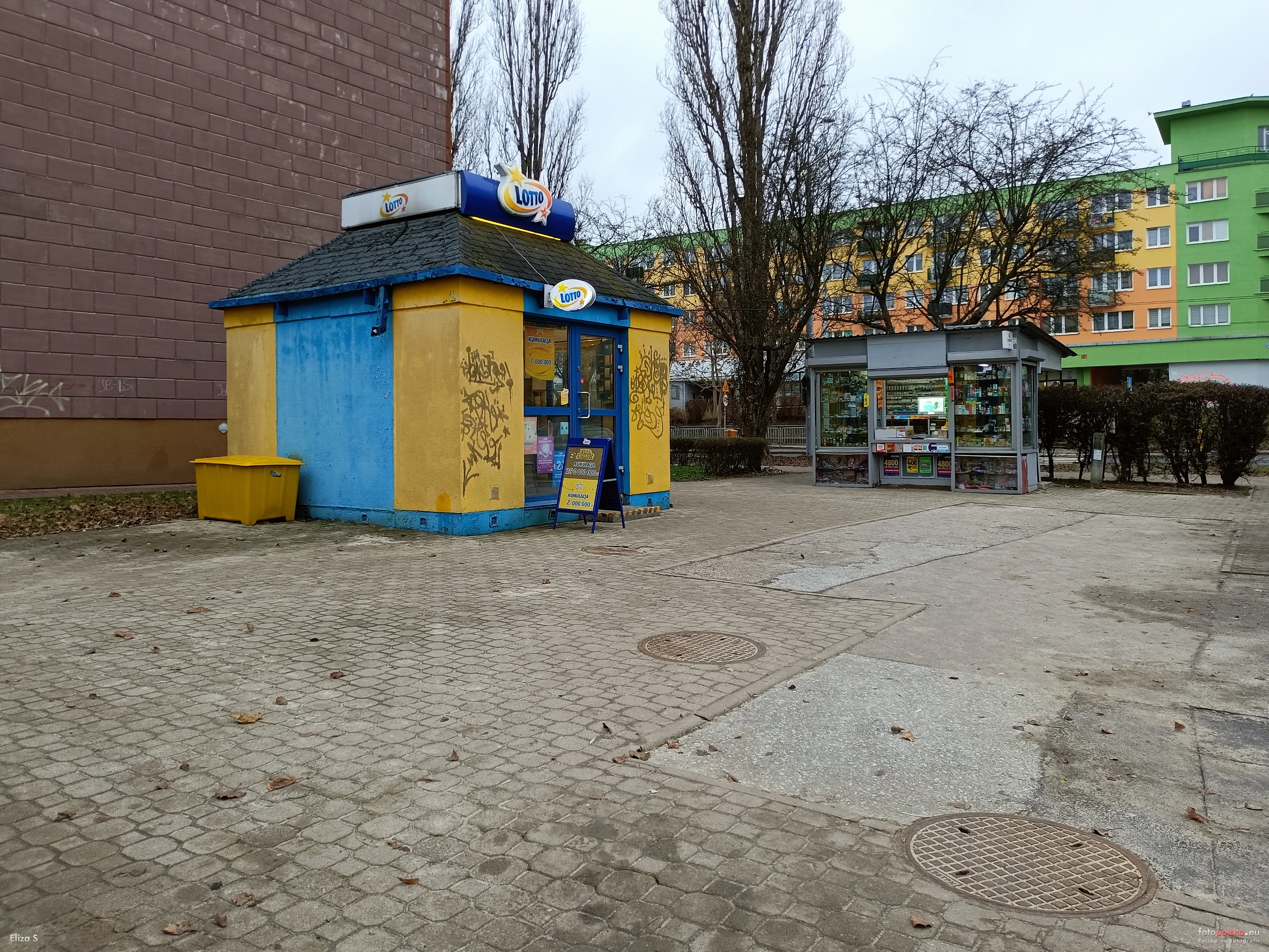 18 grudnia 2023 , Obecnie mieści się tutaj Kolektura LOTTO nr 100005. Z prawej Kiosk "osiedlowy".Skomentuj zdjęcie |