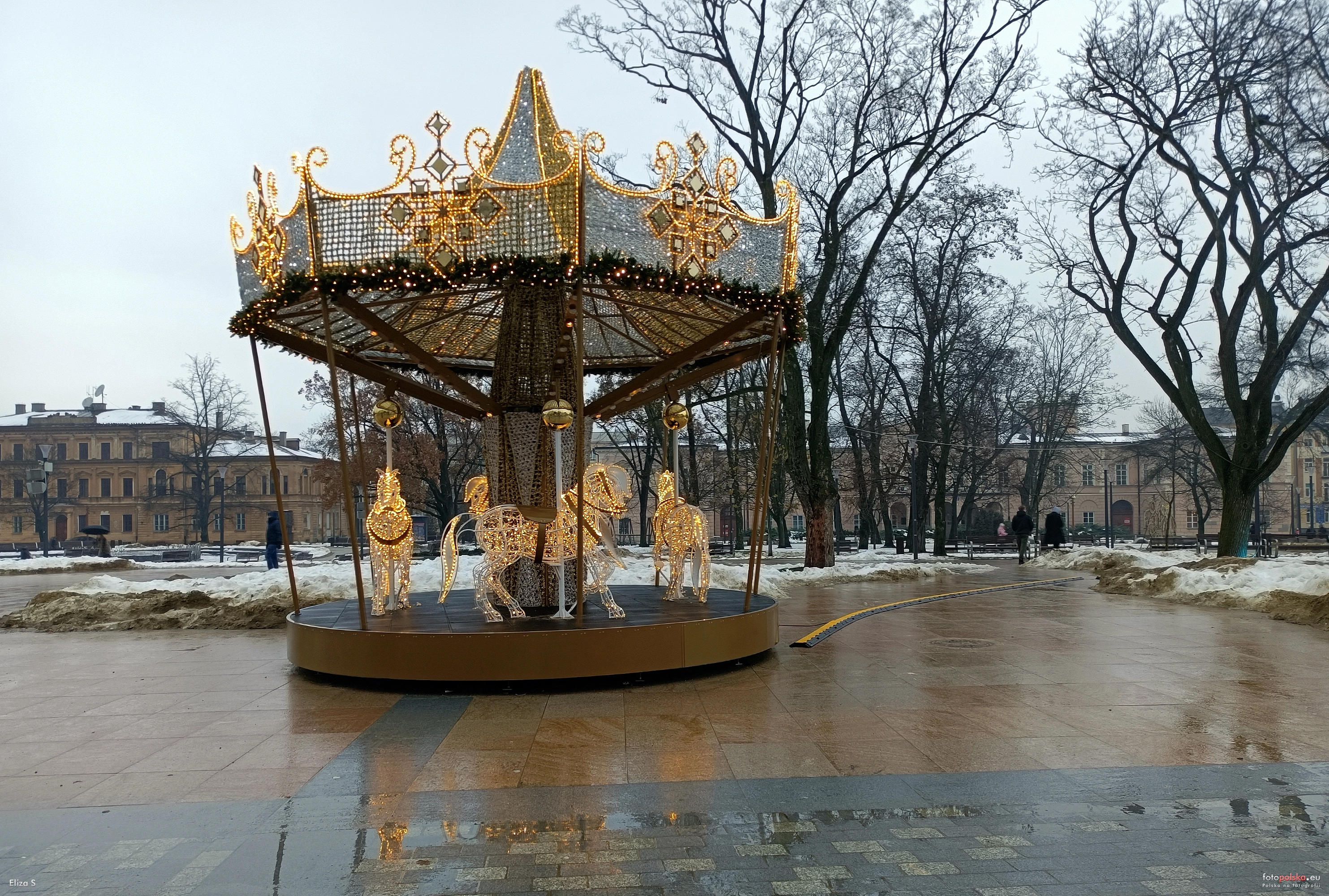 13 grudnia 2023 , Iluminacja świetlna (świąteczna) na Placu Litewskim. Karuzela z konikami.Skomentuj zdjęcie