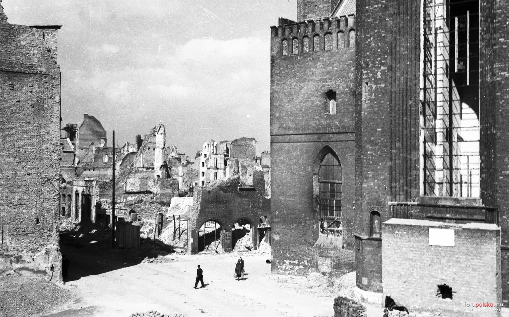 1945 , Fragment ulicy Piwnej i kościół Mariacki.Skomentuj zdjęcie |