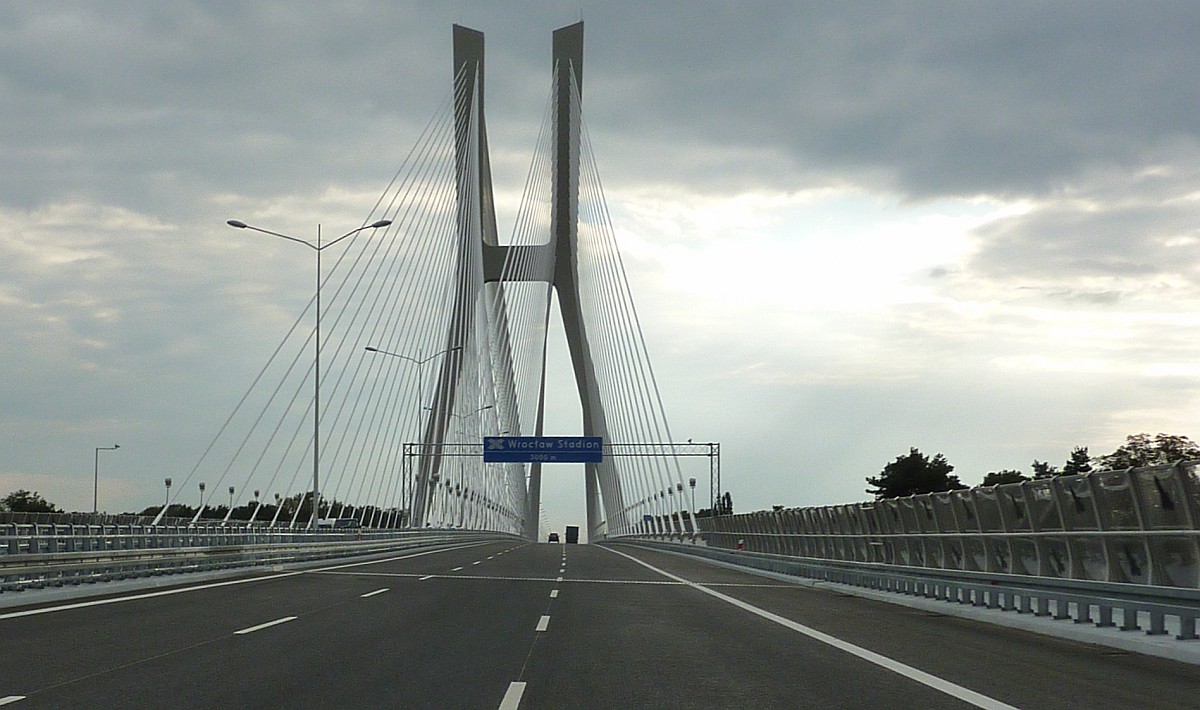 31 sierpnia 2011 , Most już w eksploatacji, pierwszy dzień. Widoczna tablica zapowiadająca zbliżanie się do węzła drogowego "Stadion"Skomentuj zdjęcie