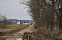 19 marca 2023 , Południowa część budowanej szkoły, widok z usuniętych torów rewitalizowanej linii kolejowej do Karpacza.Skomentuj zdjęcie