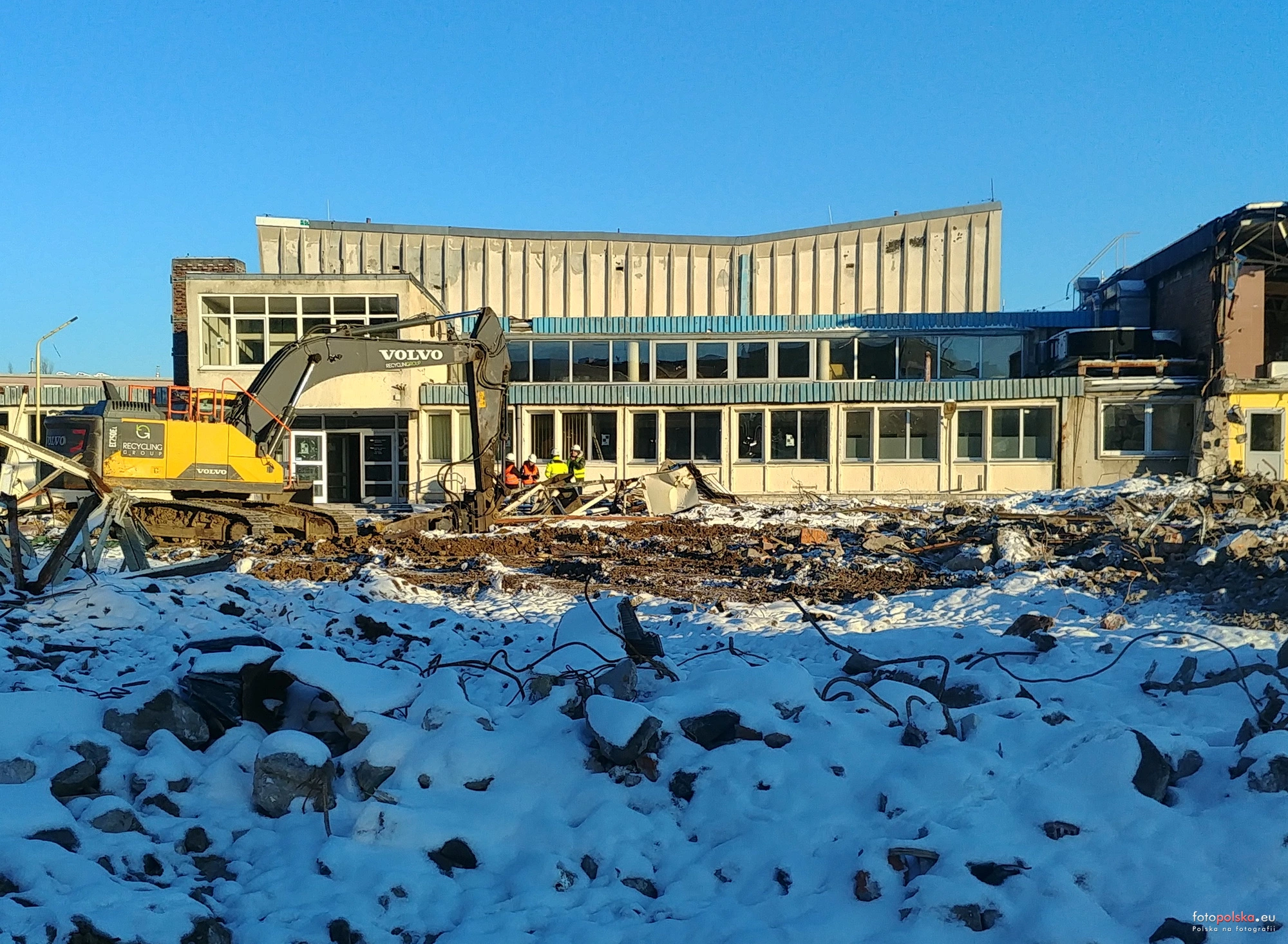 8 stycznia 2024 , Wyburzanie obiektów WDS. Pawilon głównego wejścia na kryty basen.Skomentuj zdjęcie |