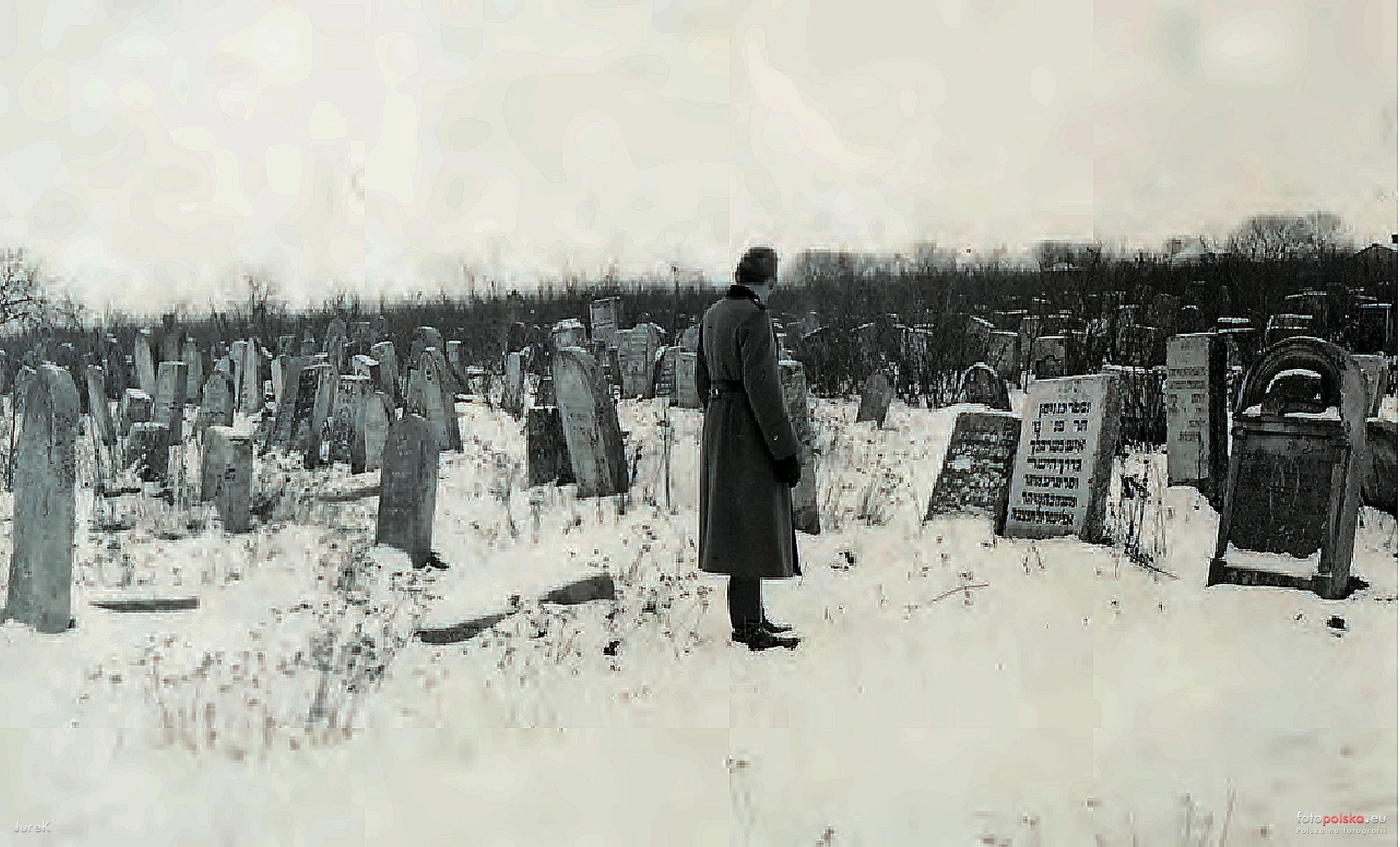 Lata 1939-1941 , Niemiecki żołnierz na żydowskim cmentarzu, zima 1939–1941, nr inw. MHK-Fs21993/IX/114Skomentuj zdjęcie