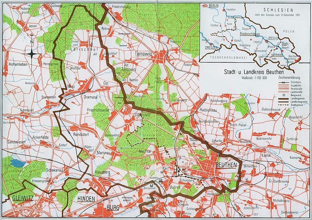 Lata 1936-1939 , Mapa powiatu Bytomskiego ( mapa wydana w Recklinghausen w 1988 roku ? ) / |