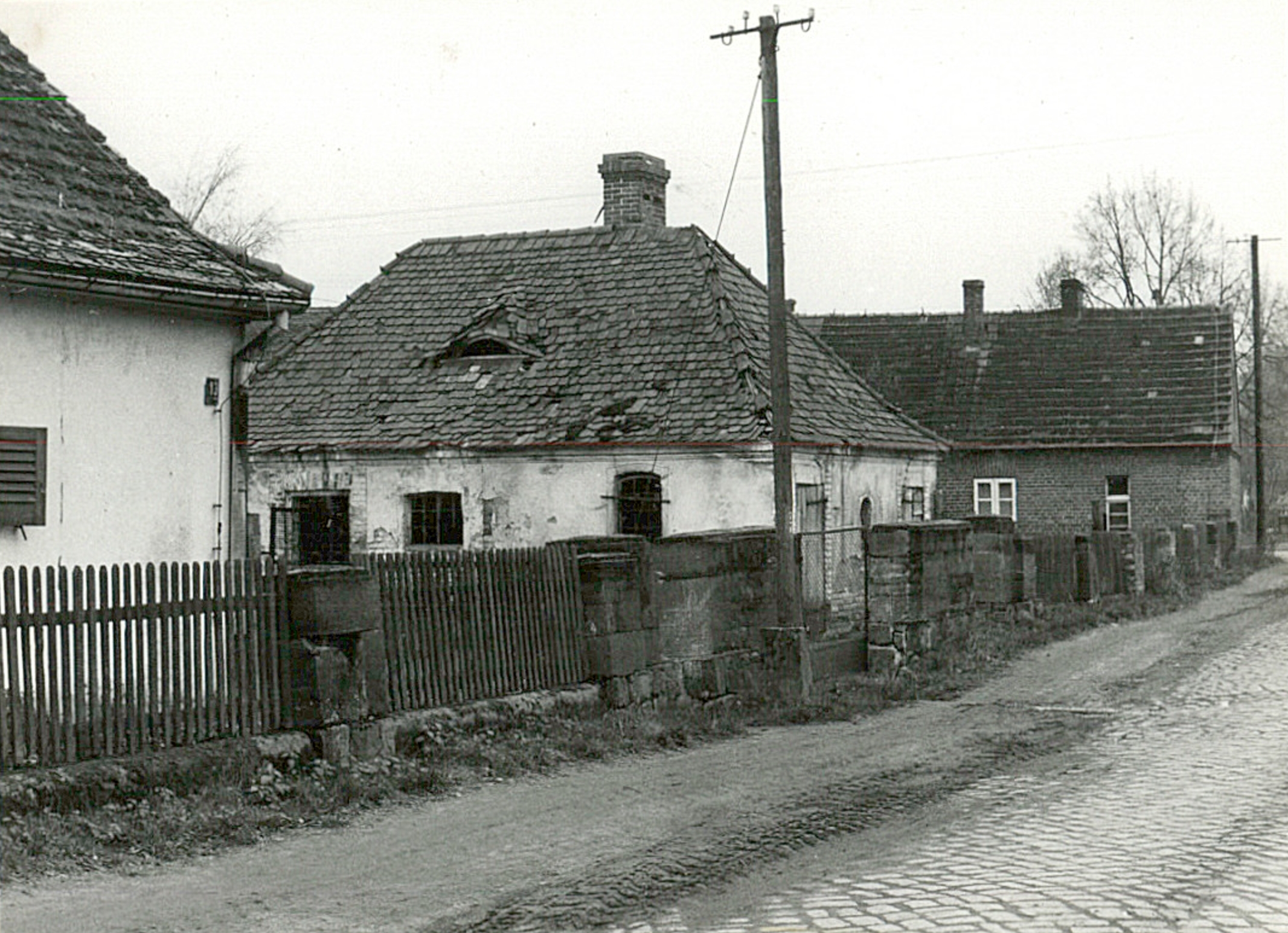 1989 , Chlew i budynki mieszkalne - widok od strony płd. - zach. Źródło:Skomentuj zdjęcie |