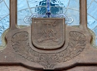 13 stycznia 2024 , Fragment drzwi głównego wejścia do budynku z inicjałami właściciela.Skomentuj zdjęcie |