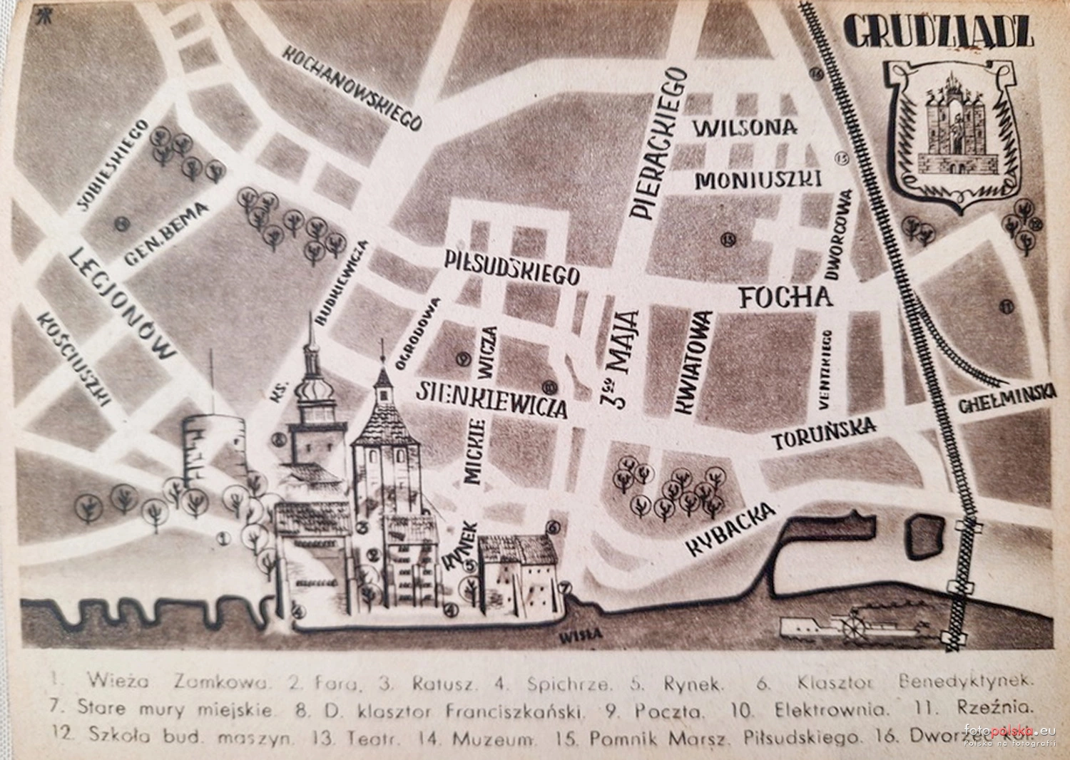 1937 , Schematyczny plan centrum Grudziądza przypominający nazwy ulic przed ll wojną światową.Skomentuj zdjęcie |
