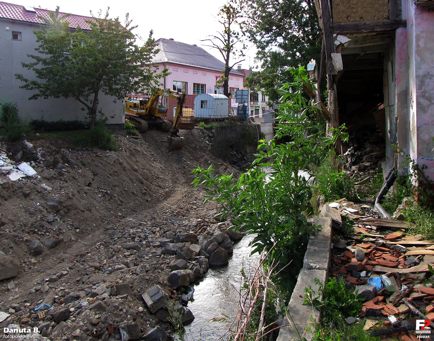 sierpień 2011 , Rok po powodzi miasto nadal walczy z usuwaniem szkód. Po prawej stronie jeden z dwóch uszkodzonych budynków przysłupowych http://fotopolska.eu/177448,foto.html"Skomentuj zdjęcie |