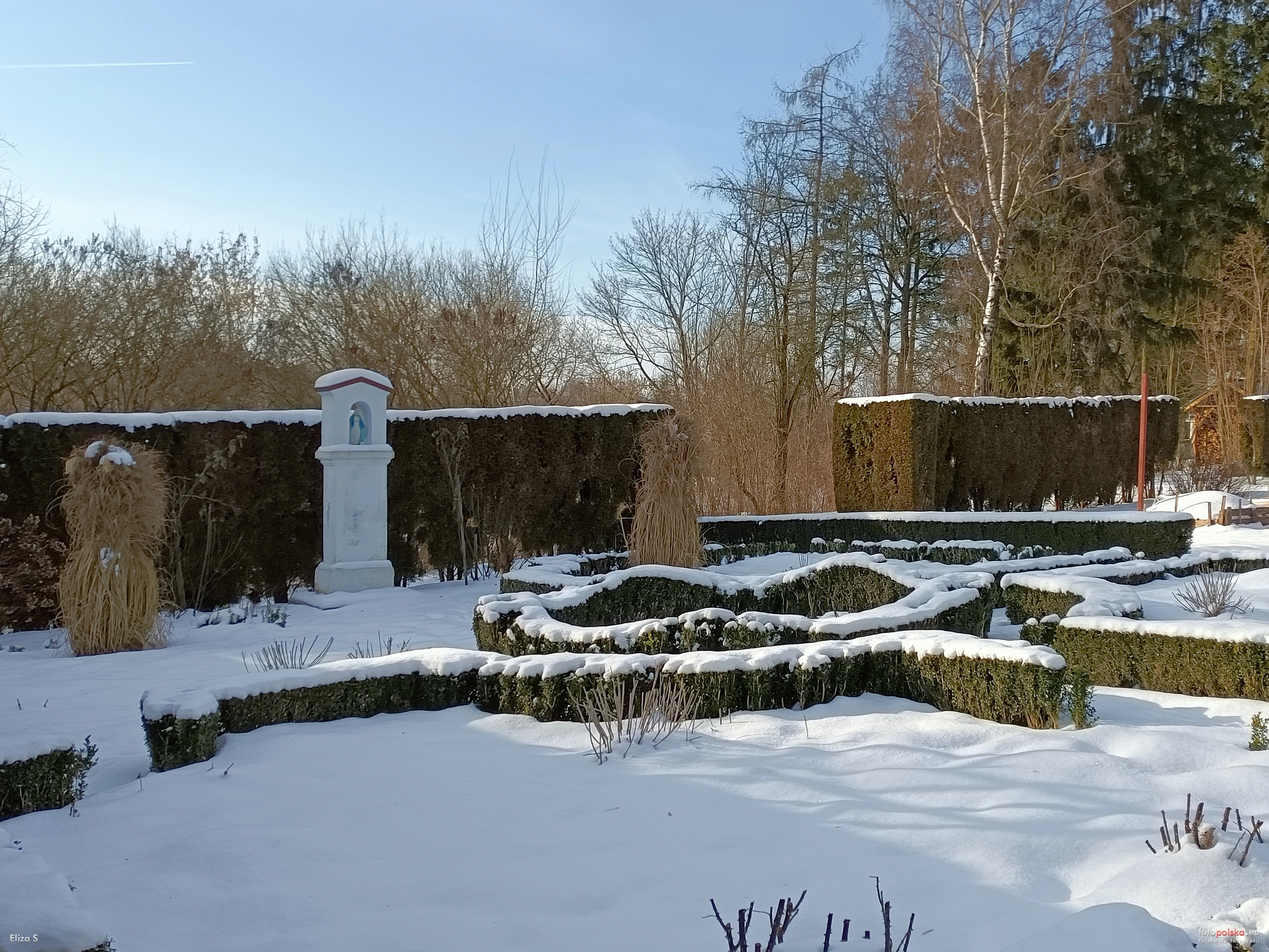 17 stycznia 2024 , Kapliczka Matki Bożej w ogrodzie przed budynkiem gospodarczym zwanym "Willą".Skomentuj zdjęcie |