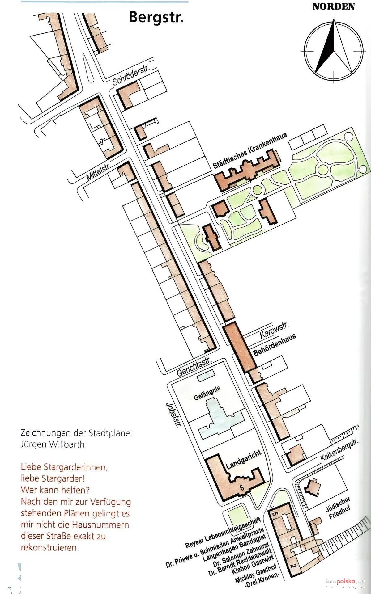 2 pobrania 1095 odsłon 0 średnia ocen Poprzednie i następne zdjęcia Wojciech Szuba Obiekty widoczne na zdjęciu Mapy i plany więcej zdjęć (48) ul. Wojska Polskiego więcej zdjęć (366) Dawniej: Bergstrasse Jak sugeruje nazwa ulicy, ludzie zaczęli osiedlać się na Bergstraße (Berg - góra) na prawdopodobnie najwyższym wzniesieniu w mieście, Kalkenberg, dawniej Kaukenberg (Kauke = wrona lub kawka). Grzbiet ten sięgał aż do wielkiego Johannis-Rondeel spiętrzonego w średniowieczu. Tu zaczynała się Bergstraße z domem nr 1. Według starogardzkiej księgi adresowej właścicielem była gmina synagogalna wraz z cmentarzem żydowskim. Z tego miejsca roztaczał się niezakłócony widok na plac sądowy, przez Bahnhofsstrasse do przejścia podziemnego iz drugiej strony, obok młyna Karow, do dzielnicy Luisen. Przed 1856 r. droga prowadziła z tego wzgórza wzdłuż podnóża Nachtigallensteig do Mühlentor. Dwie warte zobaczenia wille stały naprzeciw siebie na Bergstrasse przy wjeździe do Kalkenberg. Dom nr 3 należał do Stargarder Stadtbaurat Sonnabend. Mieszkali tu także za czynsz prezesi przeciwległego sądu rejonowego. Nowoczesna architektura z 1930 r. Pod numerem 5 po drugiej stronie był pierwszy właściciel, Herr von Lühmann, później właściciel Albert Ruddigkeit, handlarz zbożem. Na piętrze pani von Klitzing miała swój internat studencki, który cieszył się popularnością wśród uczących się prawa jazdy. Schodząc w lewo zaczynał się długi, wysoki mur więzienny, za którym skrywał się przed naszymi oczami gmach sądu wraz z przyległym skrzydłem więziennym. Mur kończył się na krótkiej drodze sądowej, która prowadziła stromo z Jobststrasse do Bergstrasse. Naprzeciw wysokiego muru więziennego Stargardzkie Towarzystwo Konsumencko-Oszczędnościowe i oficjalna Spółdzielnia Mieszkaniowa oferowały dobre mieszkania wielu znanym nam nauczycielom. Z tego domu pochodziło rodzeństwo Liermannów, dwoje zaangażowanych i bardzo lubianych nauczycieli. Karowstrasse zaczynała się za Bergstrasse. Karowstrasse zaczynała się za Bergstrasse. Tutaj mieszkali ci, którzy mieli rangę i nazwisko w naszym mieście, od Pana Burmistrza Dr. Völker, Burmistrz Dr. Stahlmanna do miejskiego mistrza budowniczego Krummbügela i jego zięcia, kantora i popularnego dyrygenta chórów stargardzkich, nauczyciela Biederstaedta. Z tego domu pochodził także aktor Klaus Biederstaedt, który zasłynął po drugiej wojnie światowej. Jeśli mieszkańcy Karowstraße chcieli iść na Bergstraße lub dalej, musieli przejść przez „budynek władz”, budynek użyteczności publicznej łączący ulice, który powstał w tym czasie w najnowocześniejszym i odważniejszym stylu architektonicznym. My, mieszkańcy Bergstrasse, byliśmy bardzo dumni z tej nowoczesnej architektury, która została zbudowana przez budowniczych, takich jak architekt Nax, miejski budowniczy Krummbügel i jego specjalista budowlany Ganske i była własnością państwa pruskiego. Można było tu dotrzeć do sześciu władz, w tym skarbu powiatowego. Tuż za nim, w domu nr 21, znajdowała się masarnia Floriana Grützmachera, w której przygotowywano bardzo smaczny Grützwurst, będący wówczas często częścią naszego cotygodniowego menu obiadowego. Aby zapewnić byt mieszkańcom Bergstraße, tej długiej ulicy mieszkalnej z wieloma dobrymi piekarniami, masarniami, sklepami spożywczymi, fryzjerami, piwem i barami klubowymi, Sklepy mleczarskie i kilku zamożnych chłopów zaopatrzonych. Rodzina Rhode mieszkała po przekątnej od numeru 21 i prowadziła zakład kąpielowy (właściciel Steingräber) z wypożyczalniami łodzi na Ihna na Blücherplatz jako najemcami. Obok, pod numerem 14, znajdował się właściciel domu Georg Geletneky, wydawca piwa i producent wody mineralnej, którego przejście w zabudowie bliźniaczej do równoległej Jobststraße często służyło jako popularne przejście dla nas, dzieci, mijając zdziwione oczy pracowników firmy .Bergstraße nr 19/21 był nowoczesnym szpitalem miejskim, zaprojektowanym również dla dzielnic Saatzig i Pyritz, zbudowanym na rozległym terenie. Przy brukowanej bramie po lewej stronie stała udekorowana wykuszem willa naczelnego lekarza, dr. Naumann, który był także ojcem dwóch ładnych blond córek bliźniaczek. W kolejnym, nieco cofniętym domu nr 37, właściciel często zmieniał sposób użytkowania budynku. „Stowarzyszenie Braci Pomorskich", operator kina i wspólnota religijna były tutaj naprzemiennymi użytkownikami budynku. Naprzeciwko, nieco pod górę, prowadziła od kościoła Odkupiciela mała Mittelstraße. Następnie Schröderstraße krzyżowała się po obu stronach, mówiąc wyżej i dolna część górskiej drogi. Ogólna krzątanina mieszkańców, która tam miała miejsce, i liczne spotkania młodych i starych sprawiły, że stało się to centrum dla mieszkańców. Duży narożny budynek, który nadal rozciąga się na Schröderstraße z podjazdem i wejściem do domu, należał do mistrza piekarskiego Otto Maasa, zawsze przyjaznego i zdolnego człowieka, który nadal dostarczał wypieki swoim klientom, którzy również mieszkali daleko w osadach z jego własny konny wóz piekarniczy. Naprzeciwko jego budynku znajdował się nasz „duży plac zabaw", miejski teren rekreacyjny, w połowie otoczony drzewami liściastymi, tuż obok szkoły Schrödera. W ciągu dnia było to również miejsce spotkań dzieci i młodzieży w wieku szkolnym, „Antrete-Platz". dla młodzieży i wszystkich entuzjastycznych młodych graczy w piłkę w Jobst-Quarter. Na środku Bergstrasse, która była tu prawie dwukrotnie szersza, znajdowała się uliczna wyspa z dużymi lipami i słupem ogłoszeniowym, na którym wywieszono hasła i reklamy produktów. Bawiły się tu głównie młodsze dzieci. Gdy nad placem zabaw unosił się zapach spalonych końskich kopyt, od razu znaleźliśmy się pod otwartą bramą kuźni szewskiej Fritz