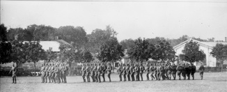 kwiecień 1920 , Maszerujący żołnierze Polonii amerykańskiej z Armii Hallera, wyposażeni w mundury dostarczone przez A.E.F. za pośrednictwem Amerykańskiego Czerwonego Krzyża.Skomentuj zdjęcie |