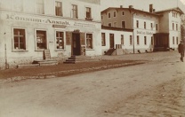 Lata 1922-1925 , Budynek przy ul. Daszyńskiego 27 w Mysłakowicach, którego lokal użytkowy obecnie zajmuje sklep z wyrobami lnianymi, niegdyś sklep spółdzielczy (Konsum-Ansalt) miejscowej spółki akcyjnej (Erdmannsdorfer Aktiengesellschaft), do której należały pobliskie Zakłady Lniarskie (późniejszy "Orzel"). Po prawej dawny Hotel zum Zillerthal, obecnie Gminny Ośrodek Kultury przy Daszyńskiego 29.Skomentuj zdjęcie |