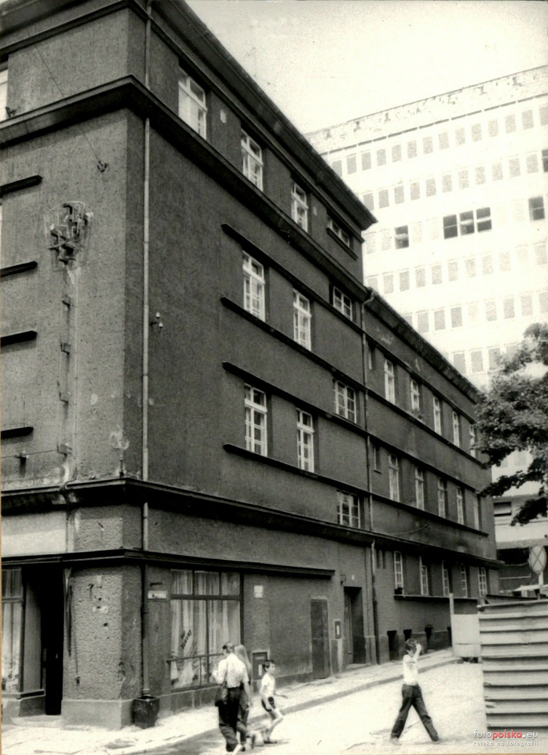 Lata 1981-1985 , Ozimska 17a, przylegająca do ul. Piwnej wschodnia elewacja kamienicy (jeszcze nie okrojona), w głębi powstający biurowiec "Społem".Skomentuj zdjęcie |