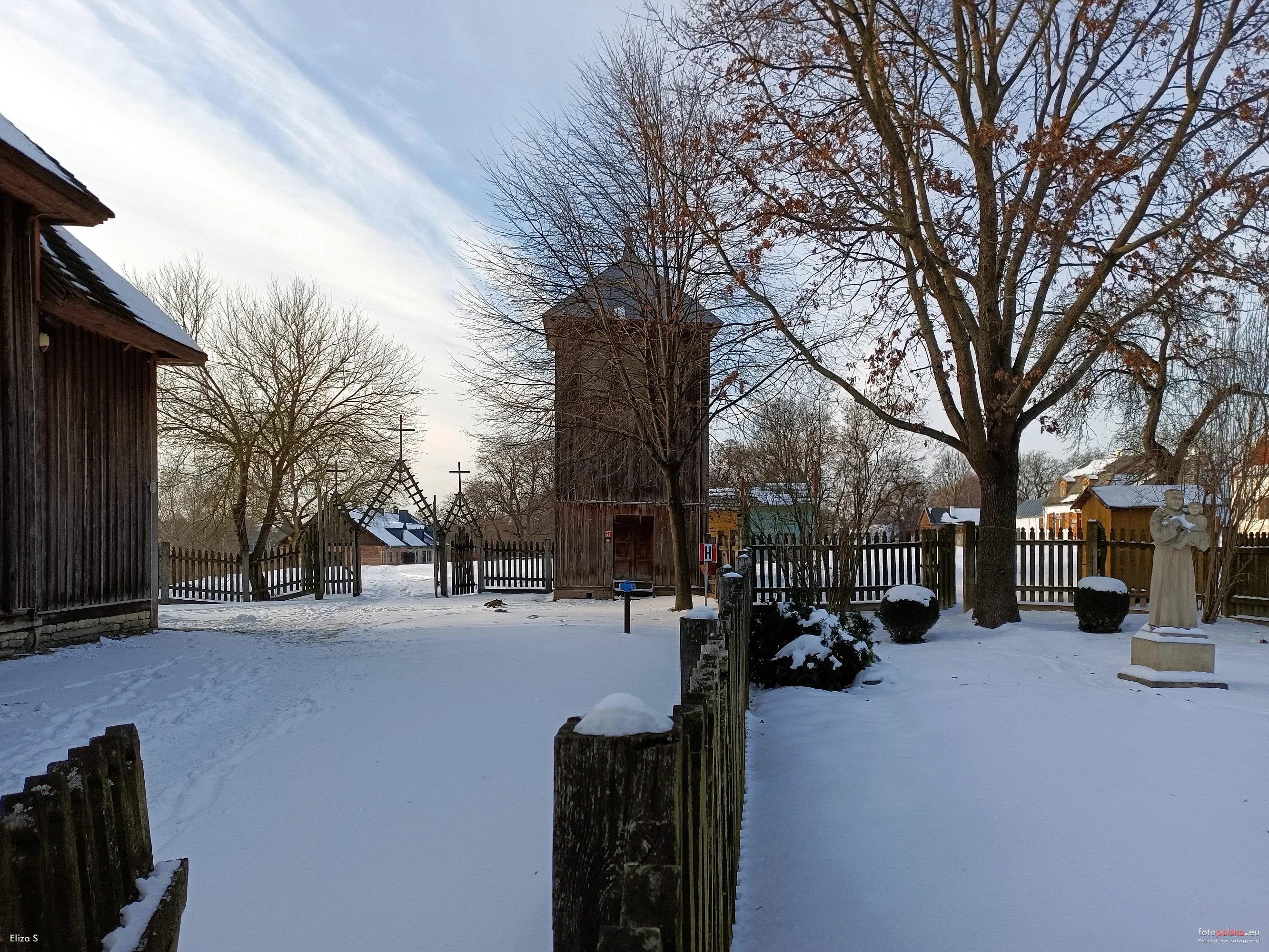 17 stycznia 2024 , Fragment Rzymskokatolickiego Zespołu Sakralnego. Z lewej teren przy kościele z Matczyna, z prawej fragment ogrodu przy plebanii z Żeszczynki. W głębi na wprost dzwonnica z Motycza.Skomentuj zdjęcie |