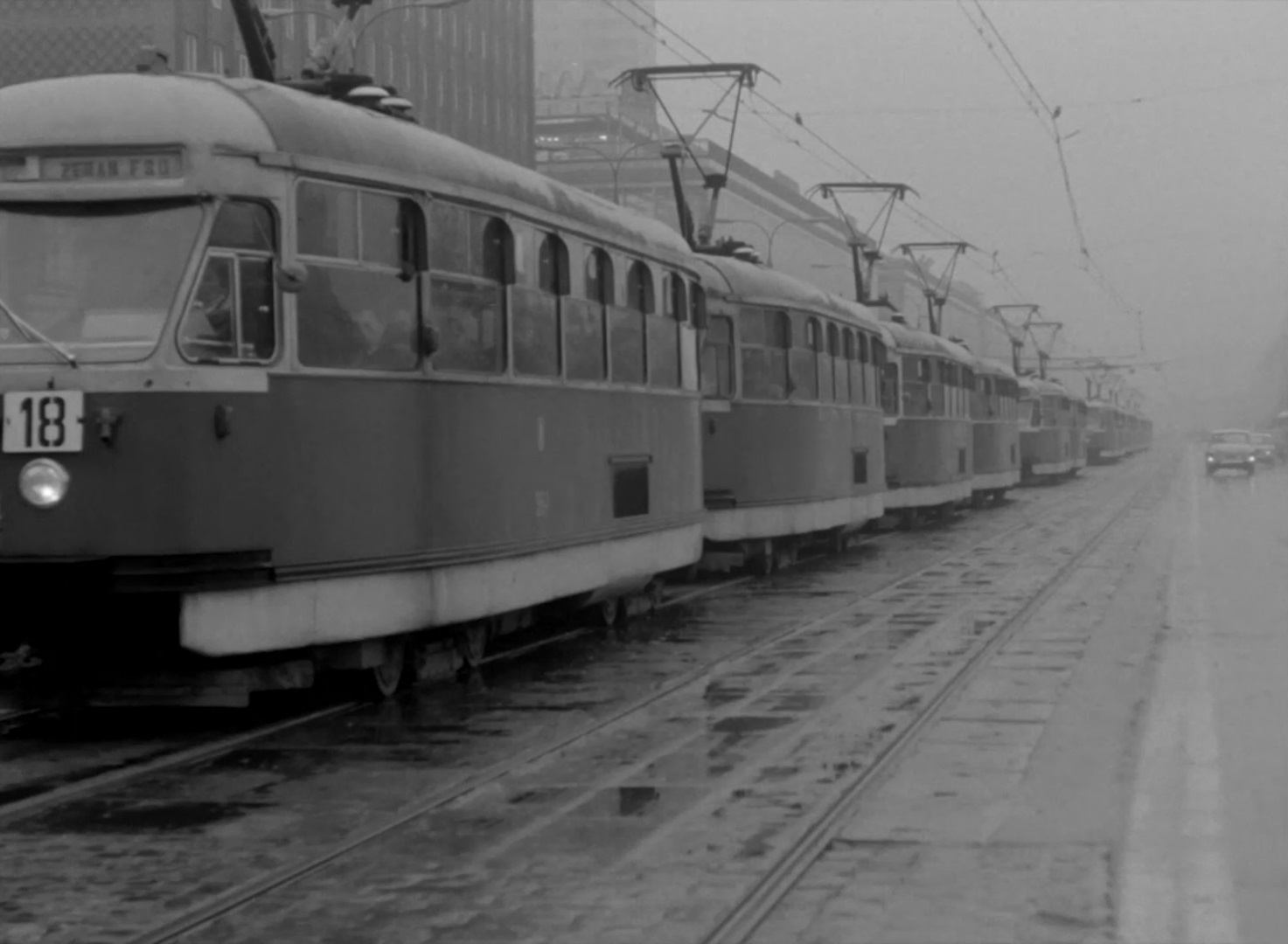1972 , Tramwaje na Marszałkowskiej. Na pierwszym planie prawdopodobnie wagon nr 256. Kadr z filmu "Trudności bardzo obiektywne".Skomentuj zdjęcie |